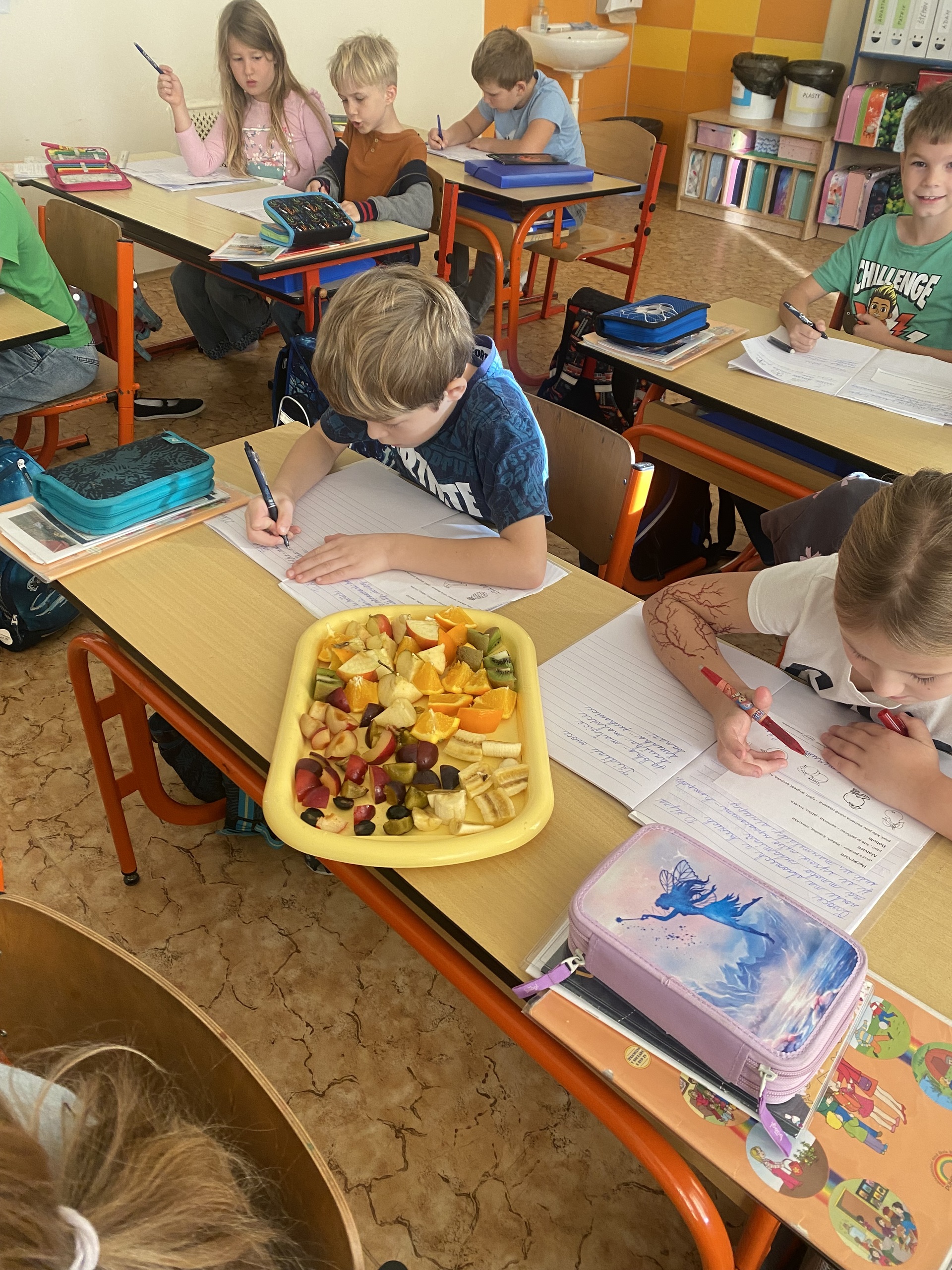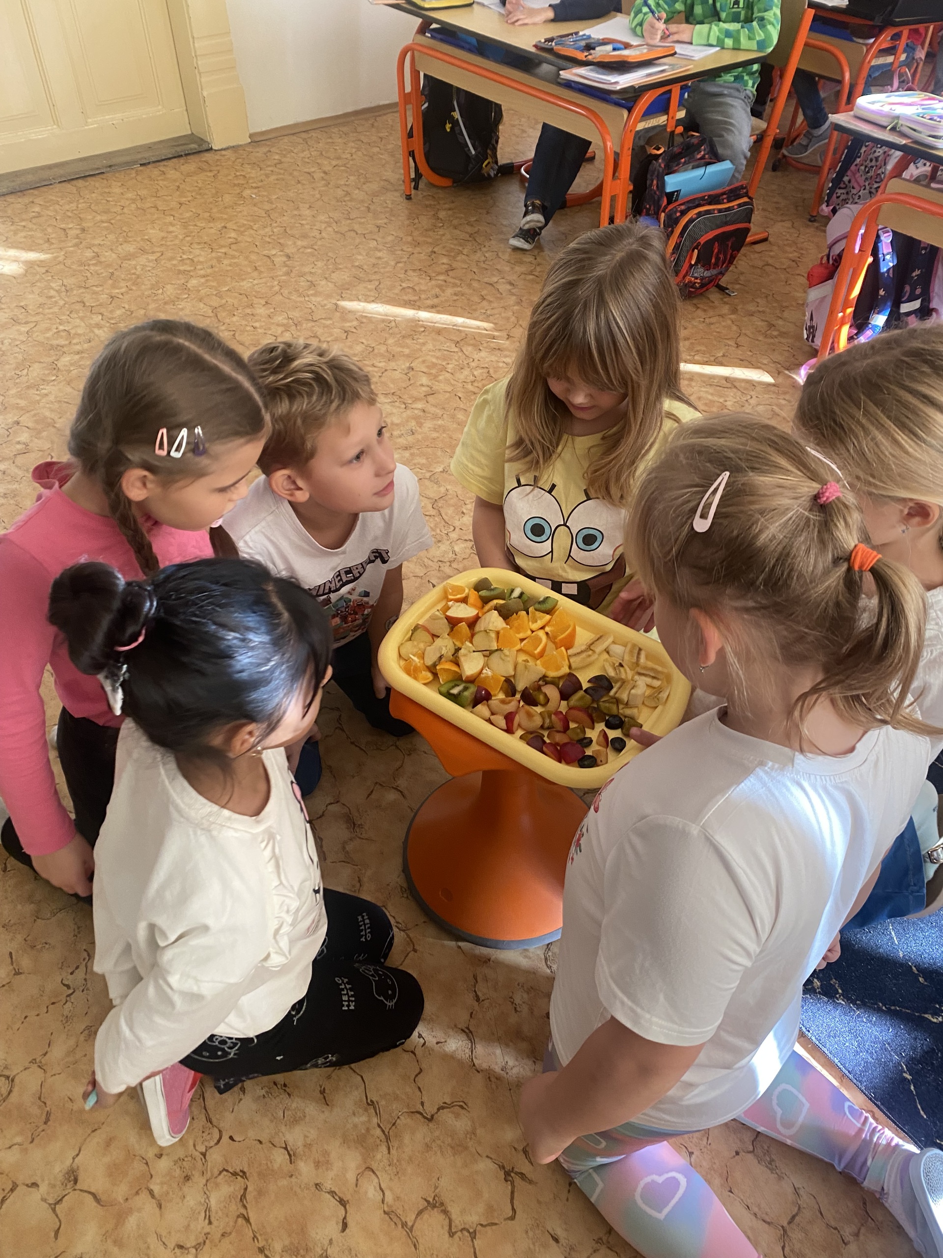 Dnes jsme se ve třídě 2.A formou zážitkového učení věnovali poznávání různých druhů plodů – peckovic, bobulí a malvic. V běžném životě se s nimi setkáváme často, ale někdy je těžké určit, do které skupiny jednotlivé plody patří. Proto jsme si je důkladně prohlédli, rozkrojili a porovnávali jejich vnitřní stavbu.