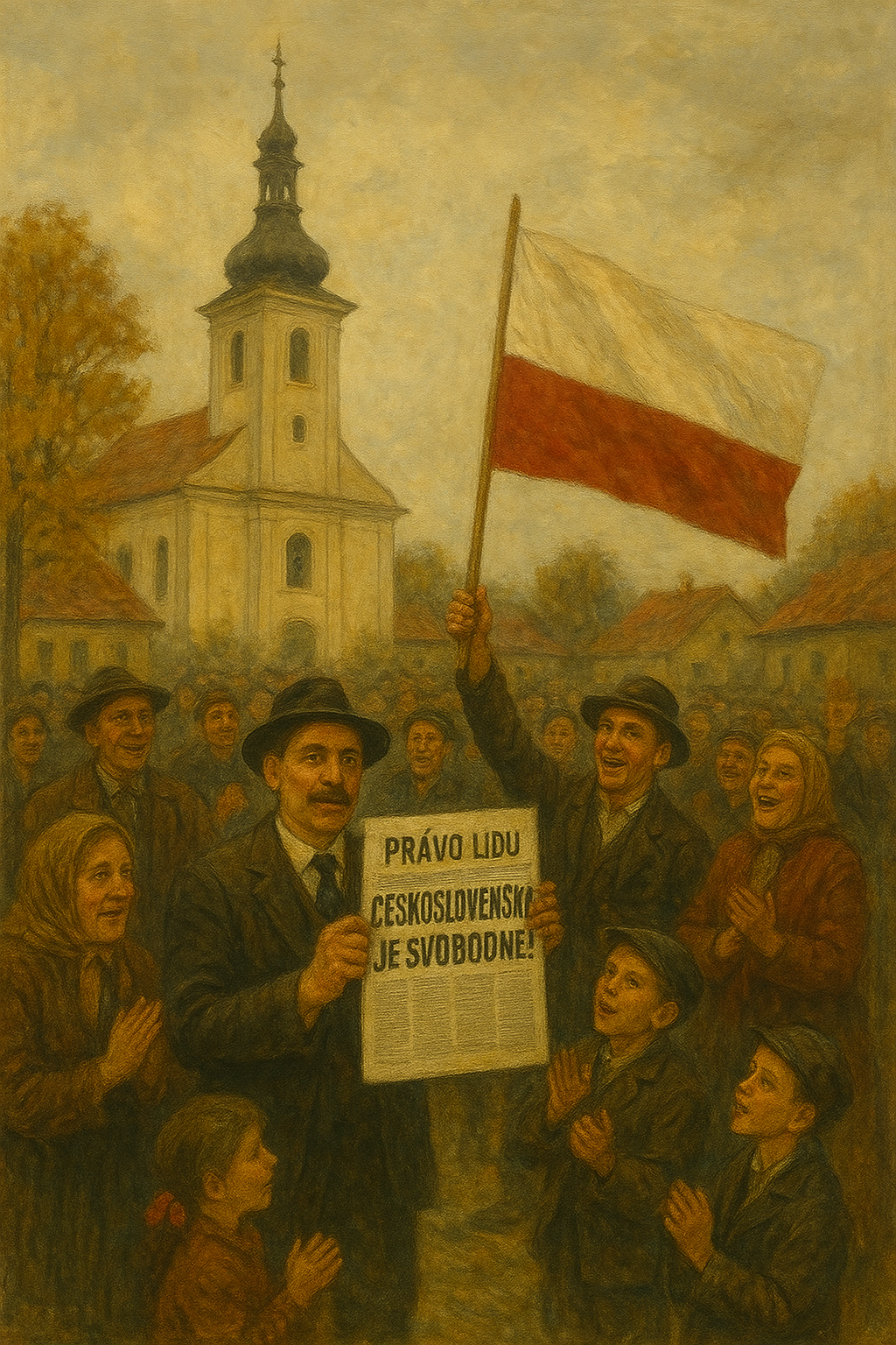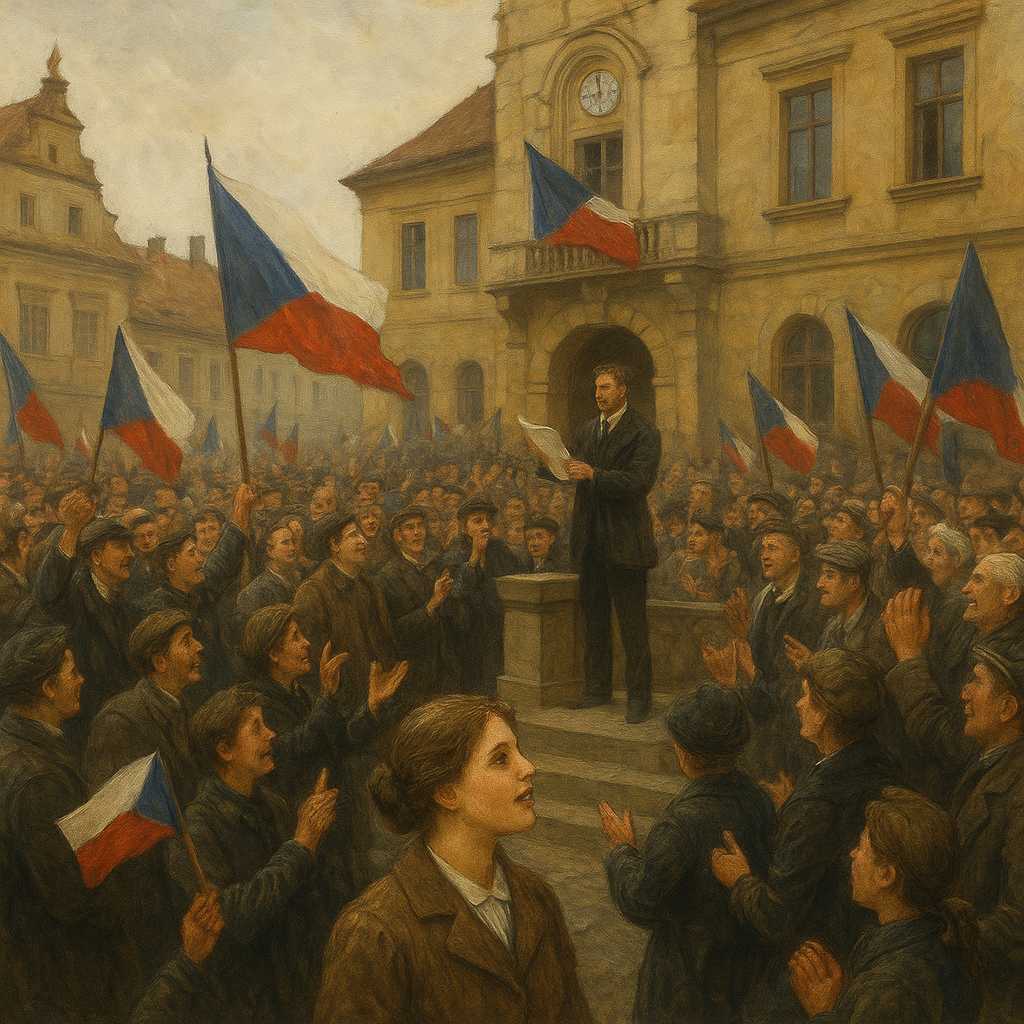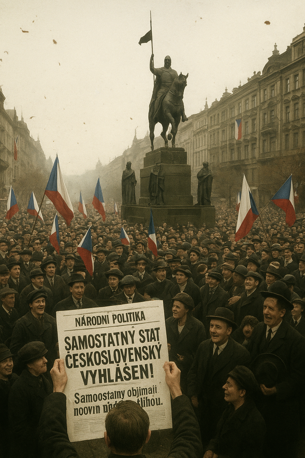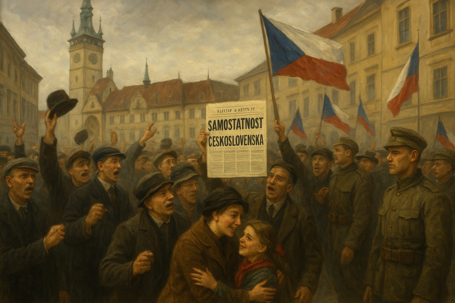 Díky modernímu vybavení školy měl každý žák k dispozici svůj vlastní Chromebook, takže práce šla rychle a efektivně. Po zjištění faktů jsme se pustili do trochu netradičního úkolu – s využitím umělé inteligence jsme se „přenesli v čase“. Každý žák si zvolil konkrétní místo, které zná – například náměstí ve svém městě nebo ulici – a nechal si od AI popsat, jak to tam mohlo vypadat 28. října 1918.