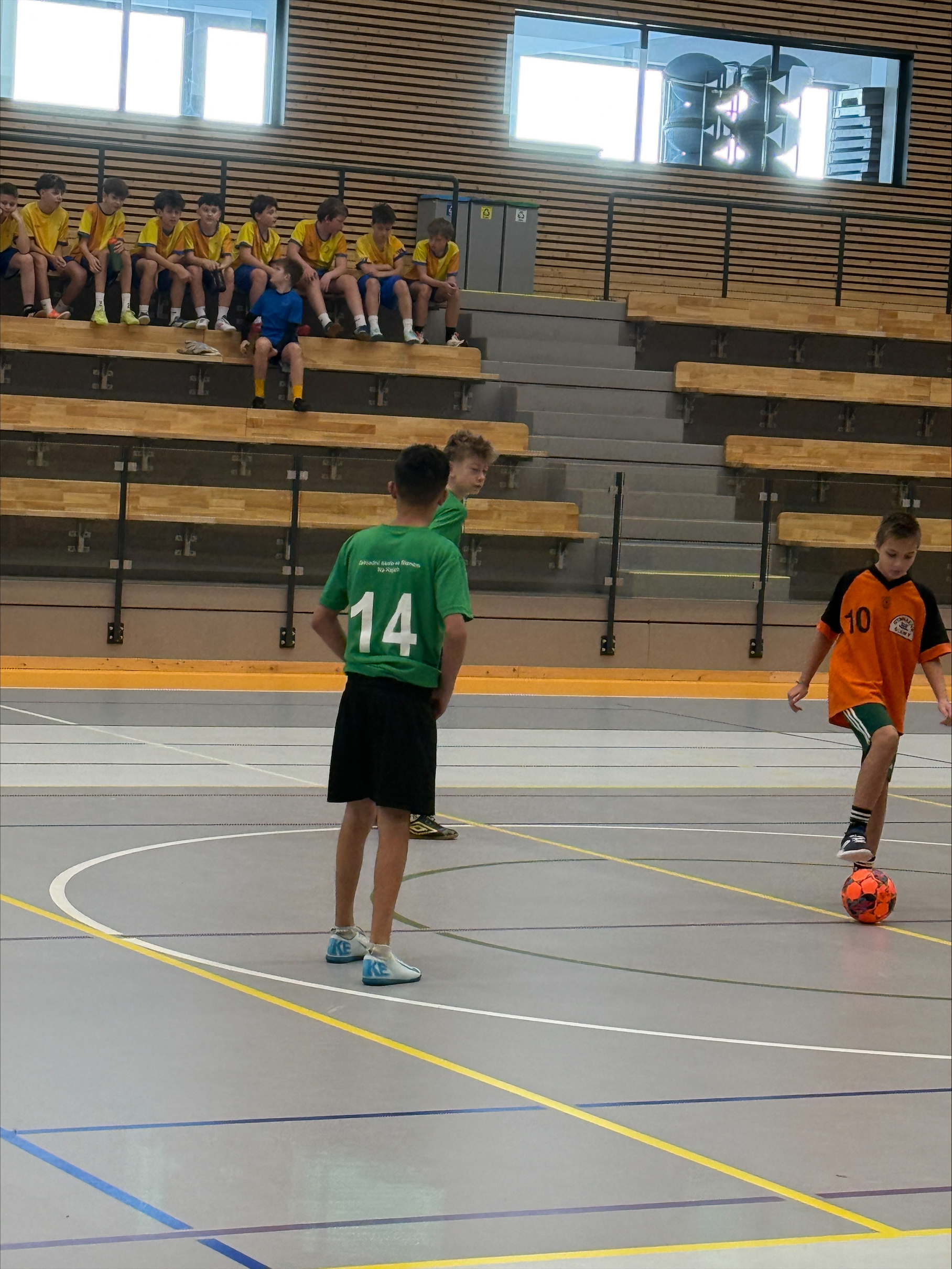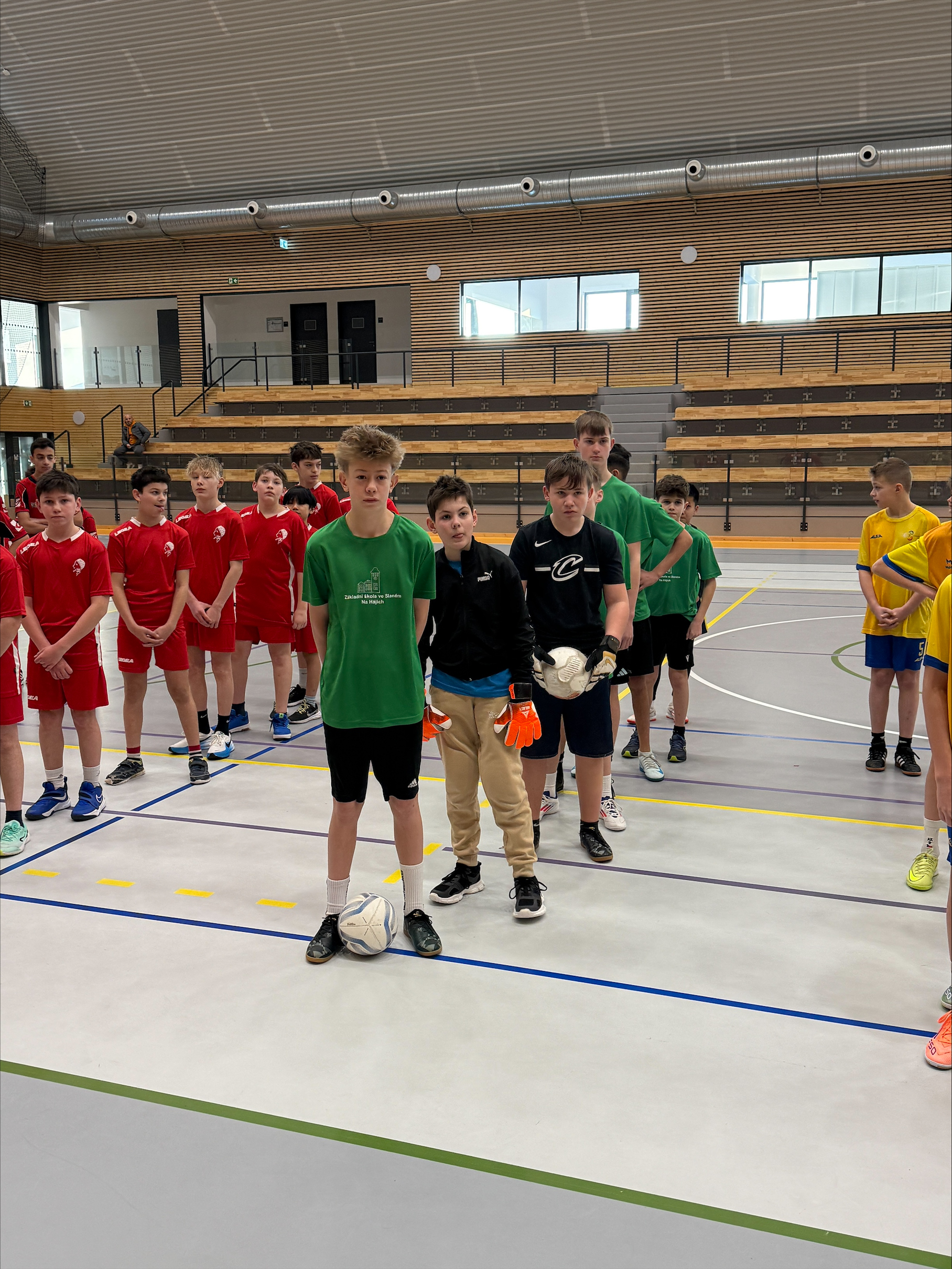 Do turnaje jsme vstoupili zápasem proti Gymnáziu Slaný. Utkání skončilo bezbrankovou remízou 0:0, přestože jsme měli po většinu času herní převahu. Dokázali jsme si vytvořit několik velmi dobrých šancí, ale bohužel se nám je nepodařilo proměnit. Největší příležitost přišla z pokutového kopu, který jsme však nevyužili, a tak si oba týmy z prvního zápasu odnesly po bodu.