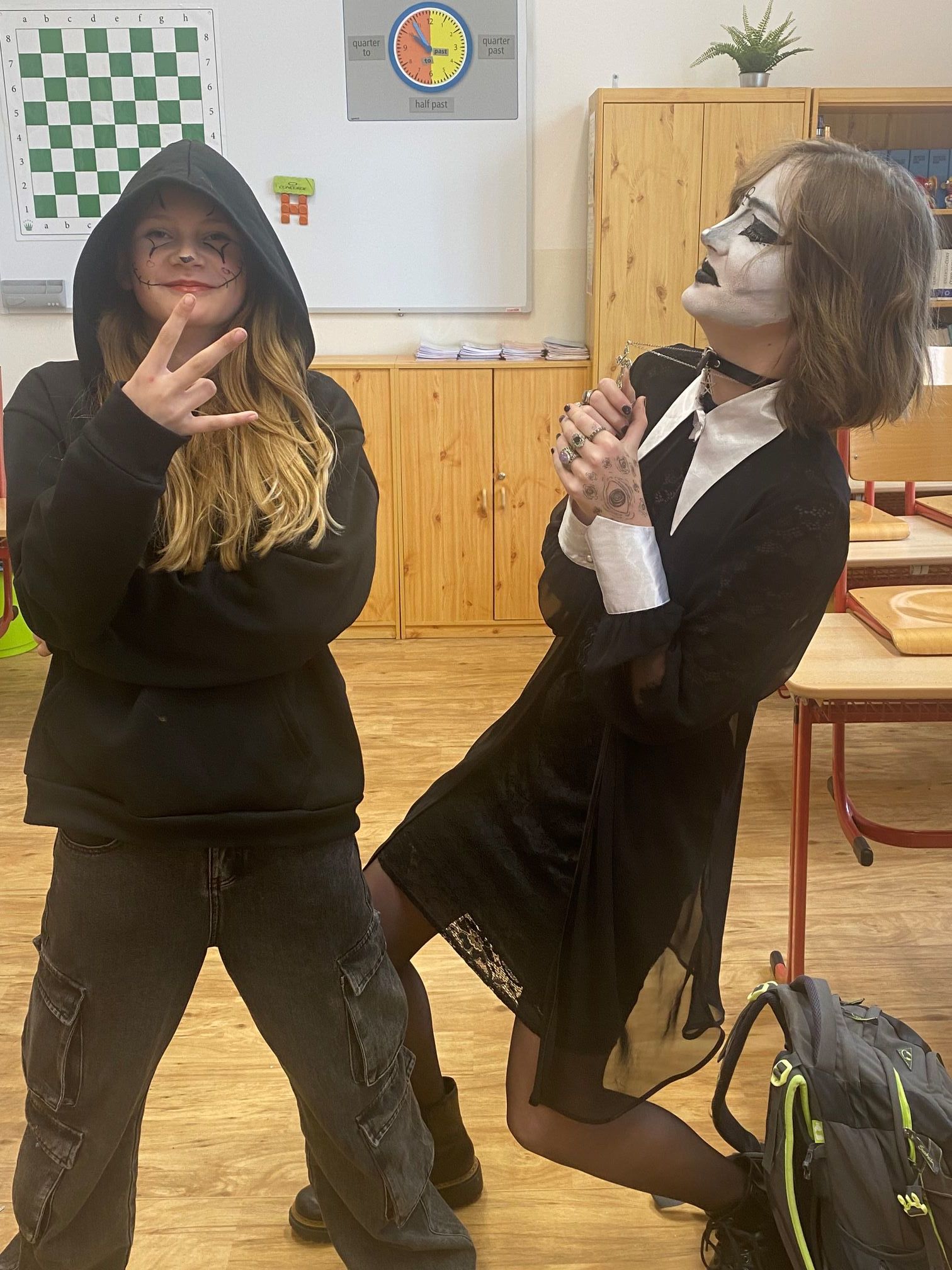 Konec října bývá tradičně spojen s oslavami Halloweenu, který se v posledních letech stal oblíbenou součástí podzimního období. Také u nás ve škole jsme si tento den připomněli a na chodbách bylo možné zahlédnout nejrůznější kostýmy, které dotvářely kouzelnou podzimní atmosféru.