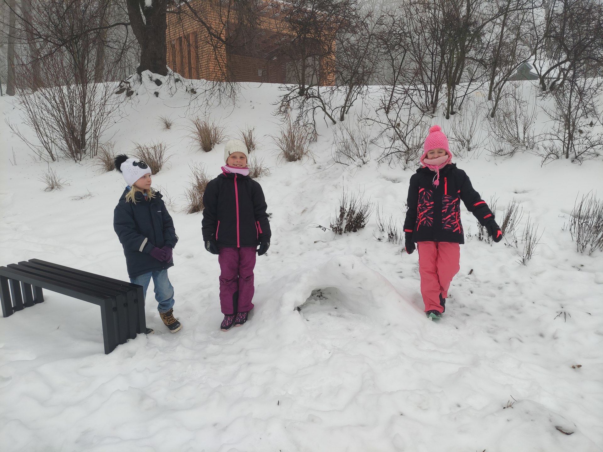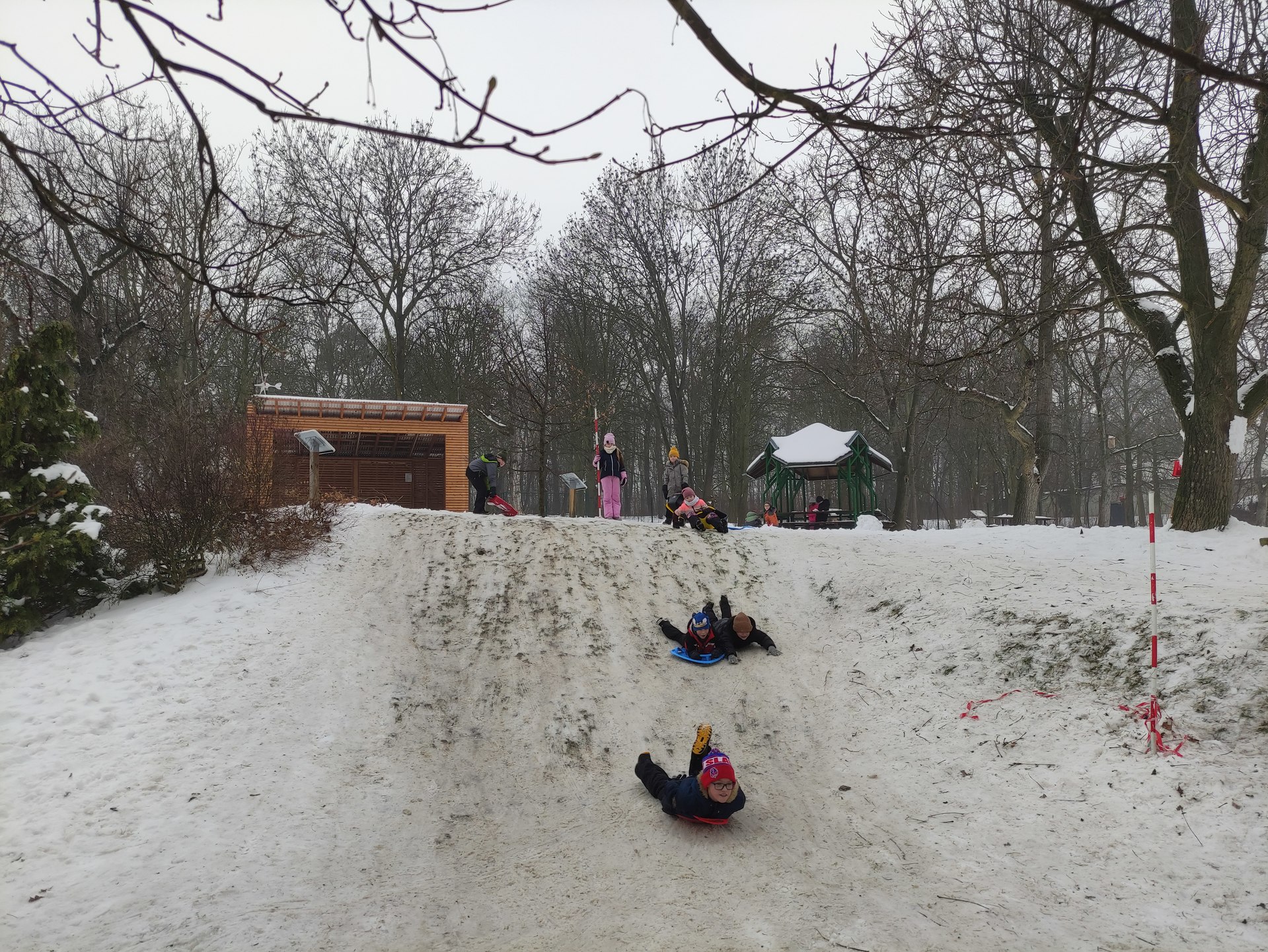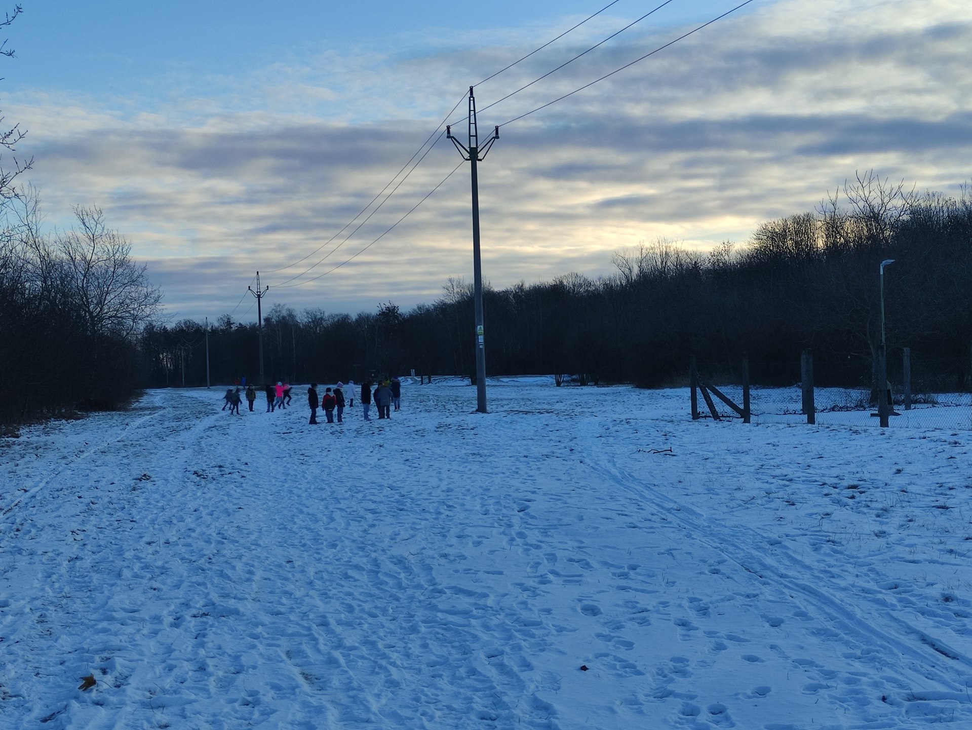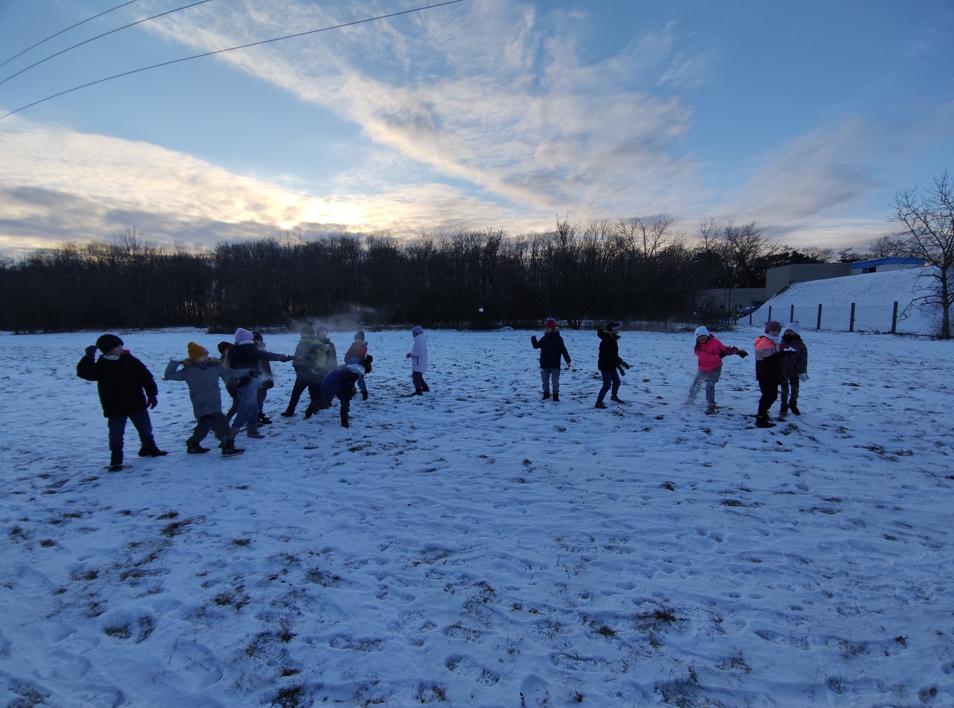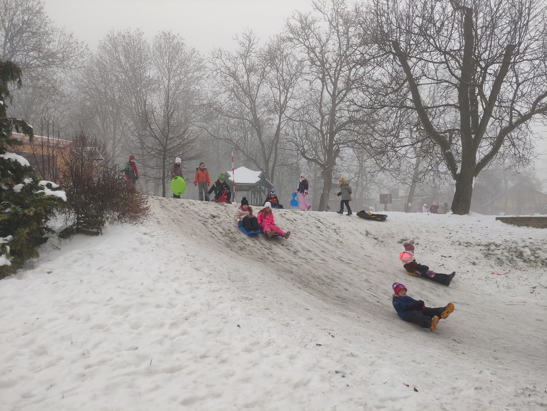 Zabavili jsme se nejen házením koulí do dálky, ale hlavně jsme využili boby, lopaty a sáně, které jsme si přinesli z domova.