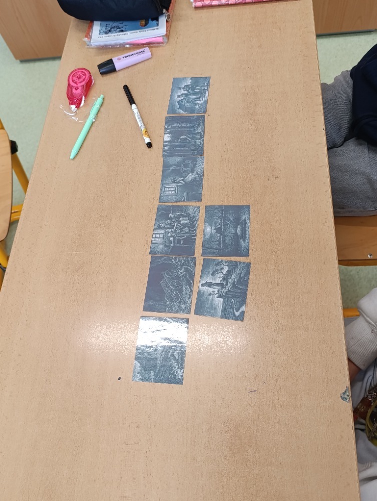 Hodina byla zaměřena na porozumění ději. Žáci pracovali s osmi kartičkami s ilustracemi jednotlivých výjevů z balady a skládali je do správné dějové posloupnosti. Procvičili si tak orientaci v textu i schopnost vystihnout klíčové momenty příběhu.