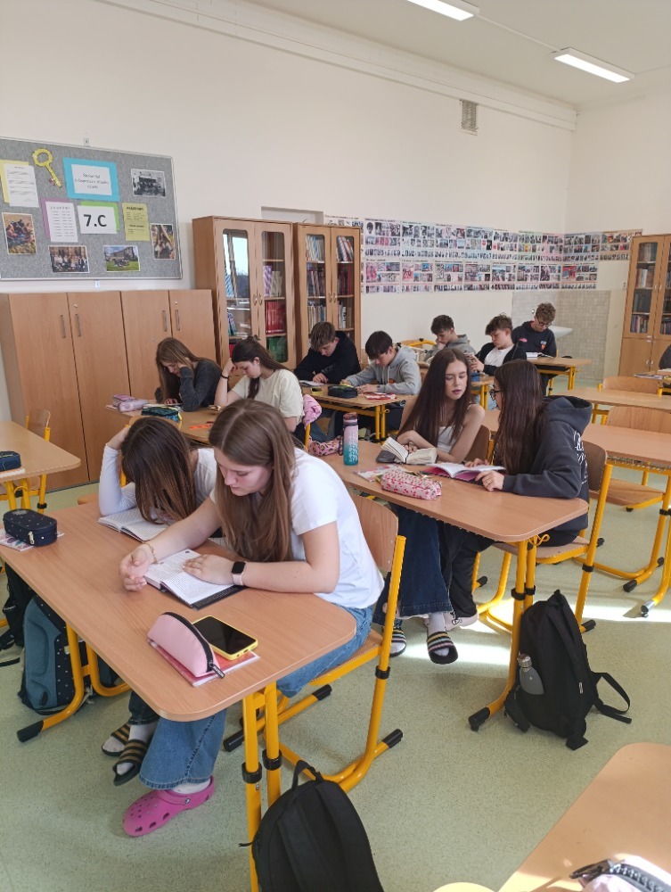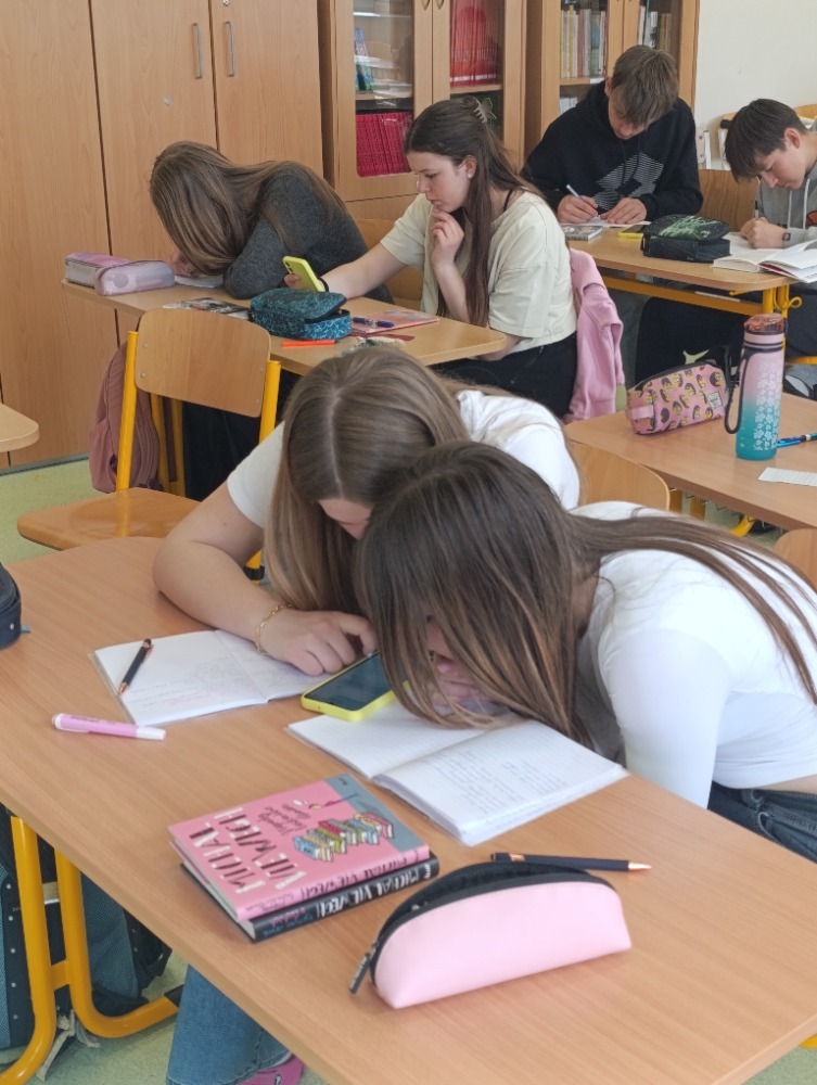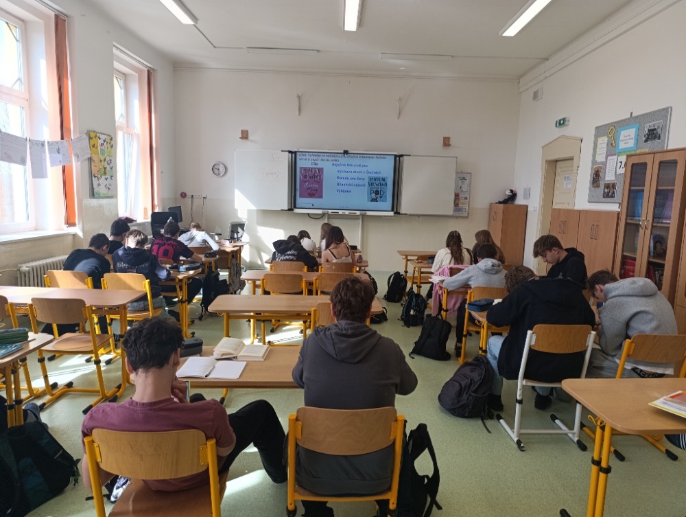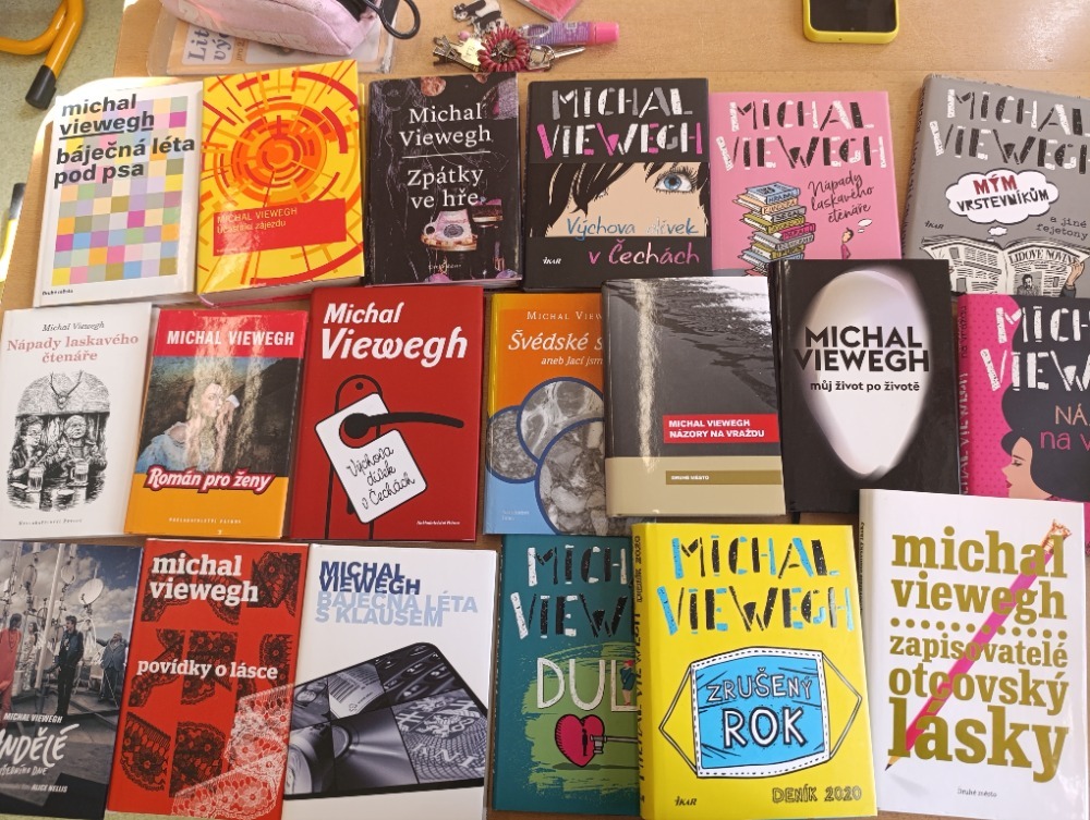 Každý žák si následně vybral libovolnou knihu od autora a z ní krátkou ukázku, kterou si samostatně přečetl. Společně jsme pak hledali typické jazykové prostředky a témata, která Viewegh ve svých dílech používá.
