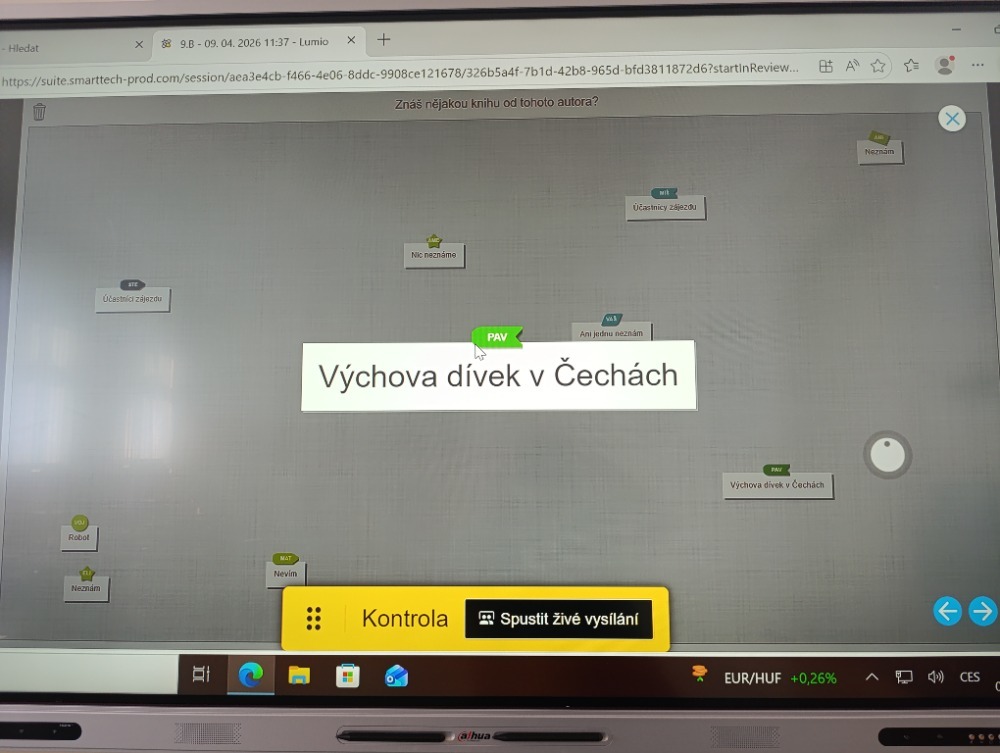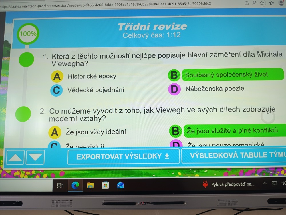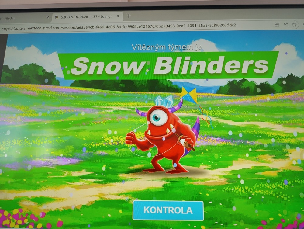 Získané poznatky si žáci upevnili během skupinové hry v programu Lumio. Třída byla rozdělena do týmů a za každou správnou odpověď „rostla“ jejich příšera, což přineslo do hodiny soutěživý a zábavný prvek.