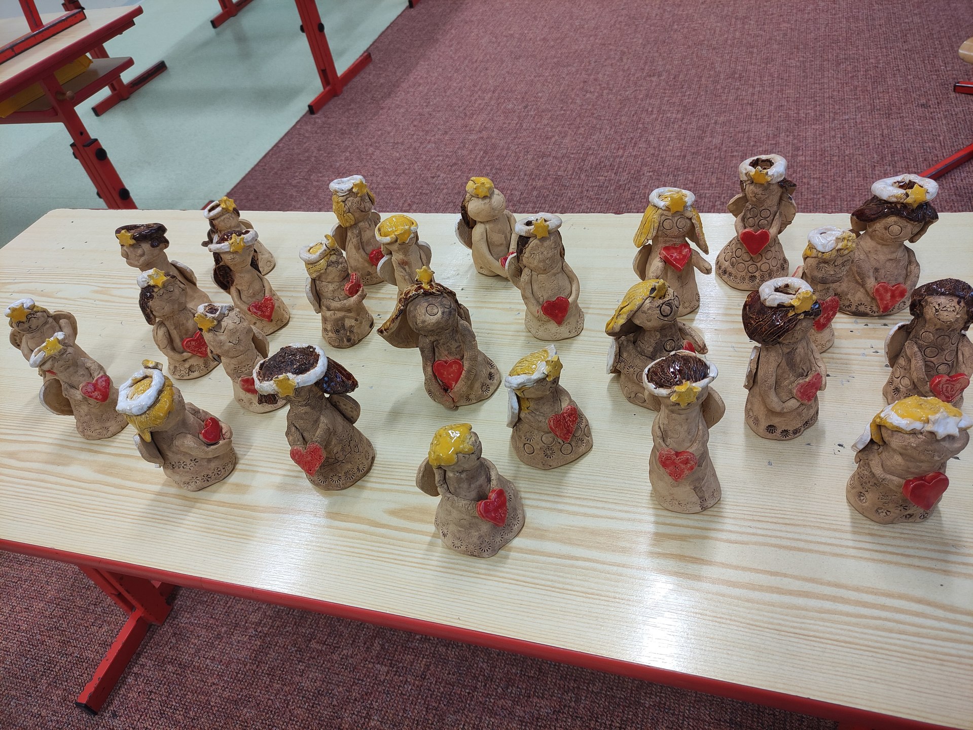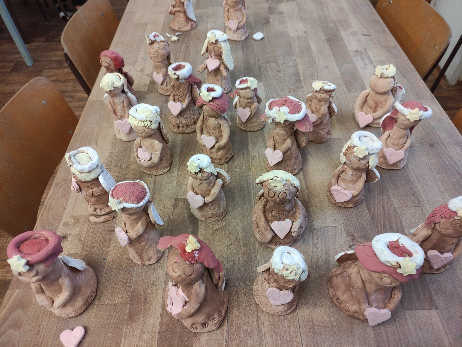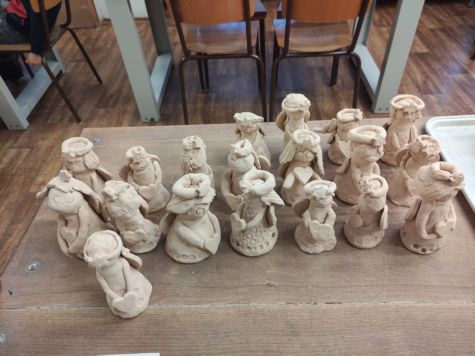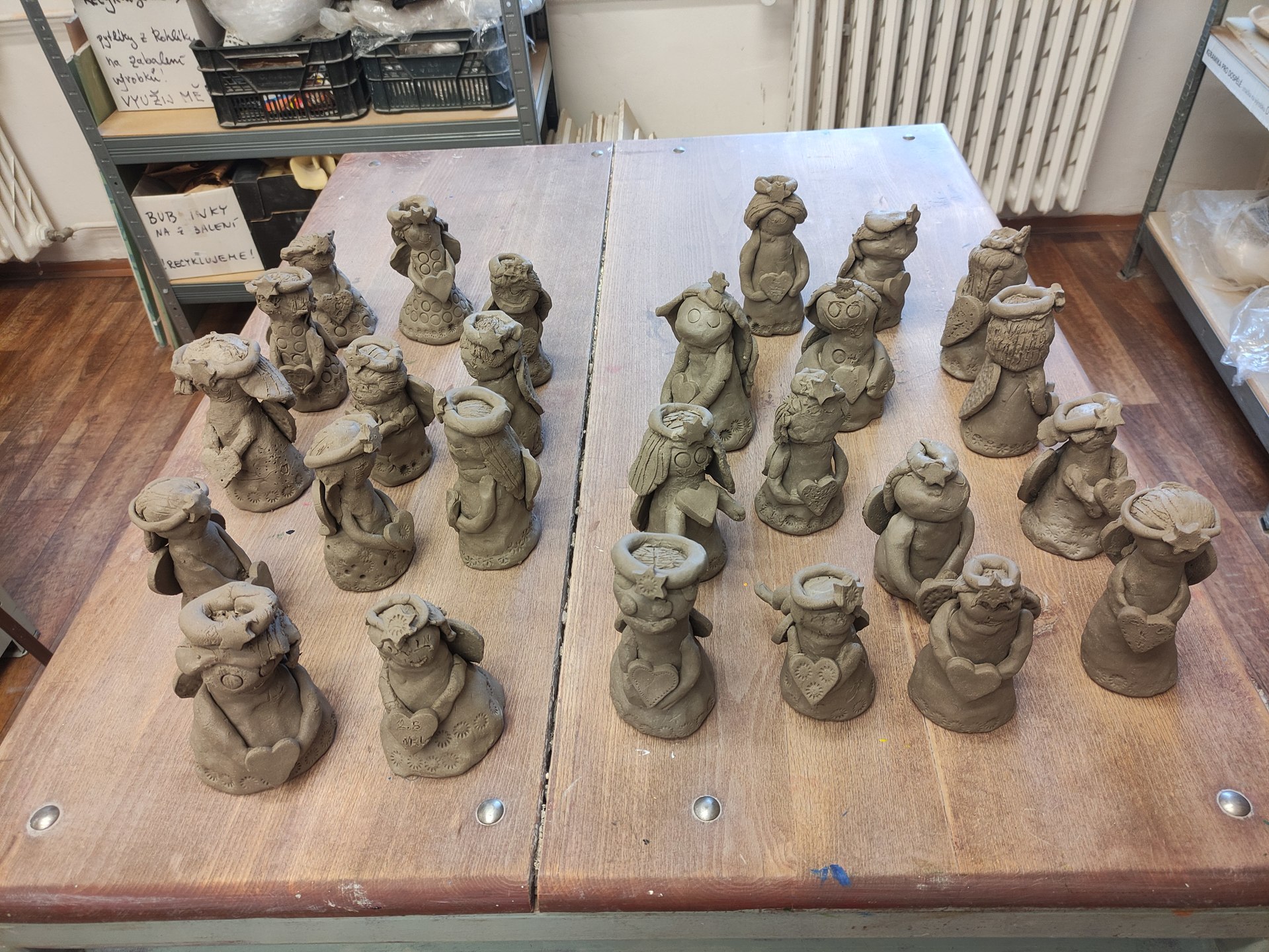 Práce to nebyla jednoduchá. Nejprve jsme museli zpracovat keramickou hlínu a z té vymodelovat andělíčky. Ty museli na první výpal do pece.