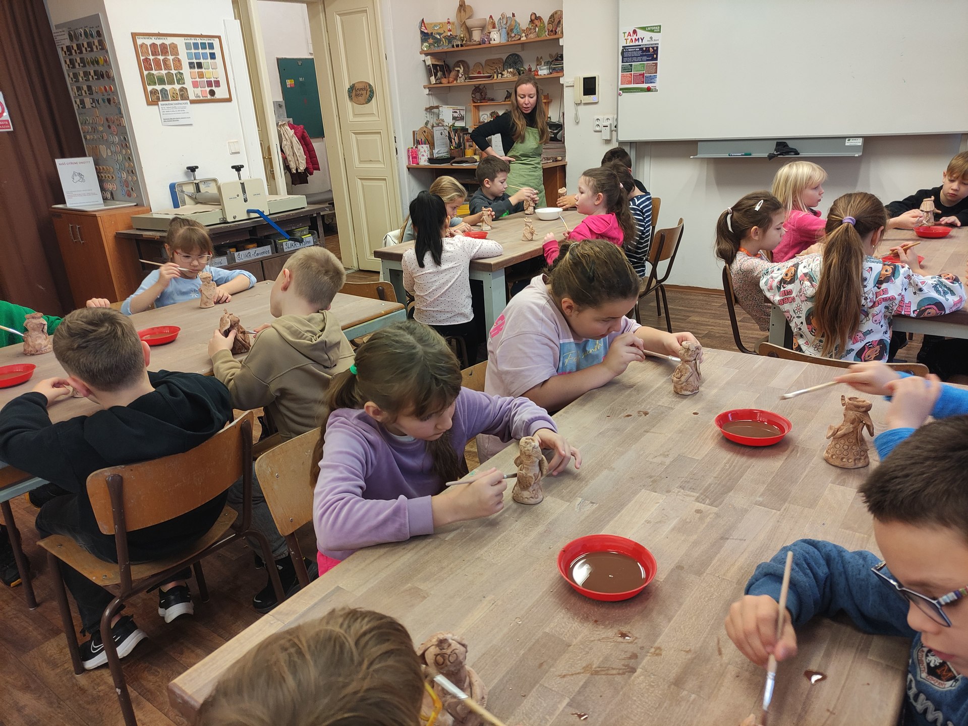 Za dalších 14 dní jsme je naglazovali speciální barvou a po následném vypálení nám je pan školník přivezl do školy.