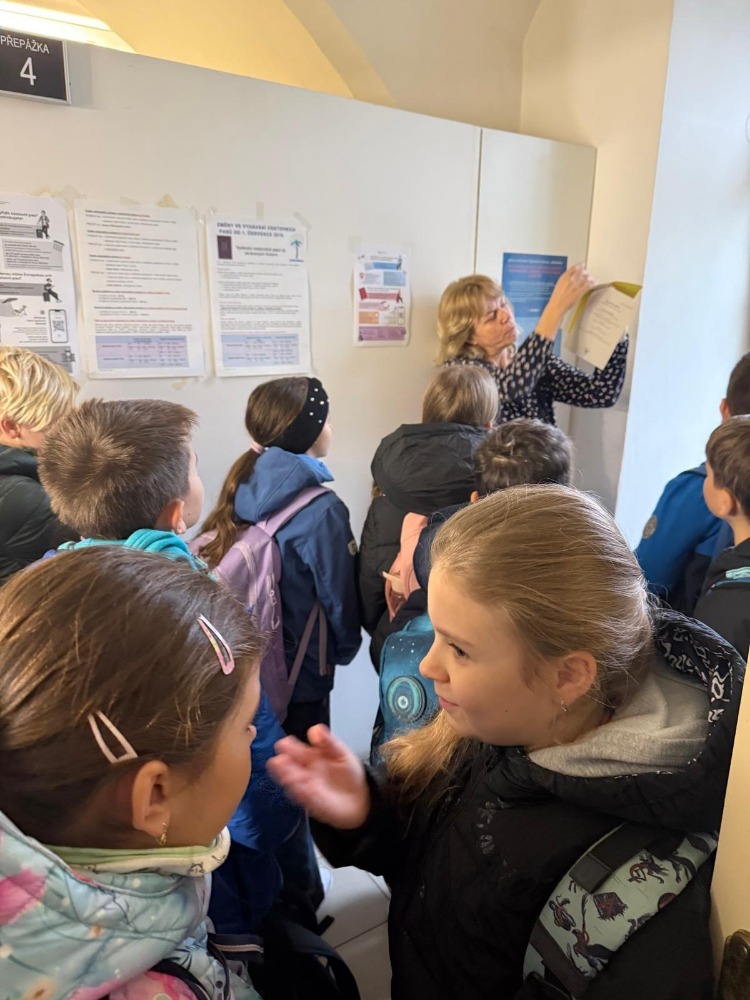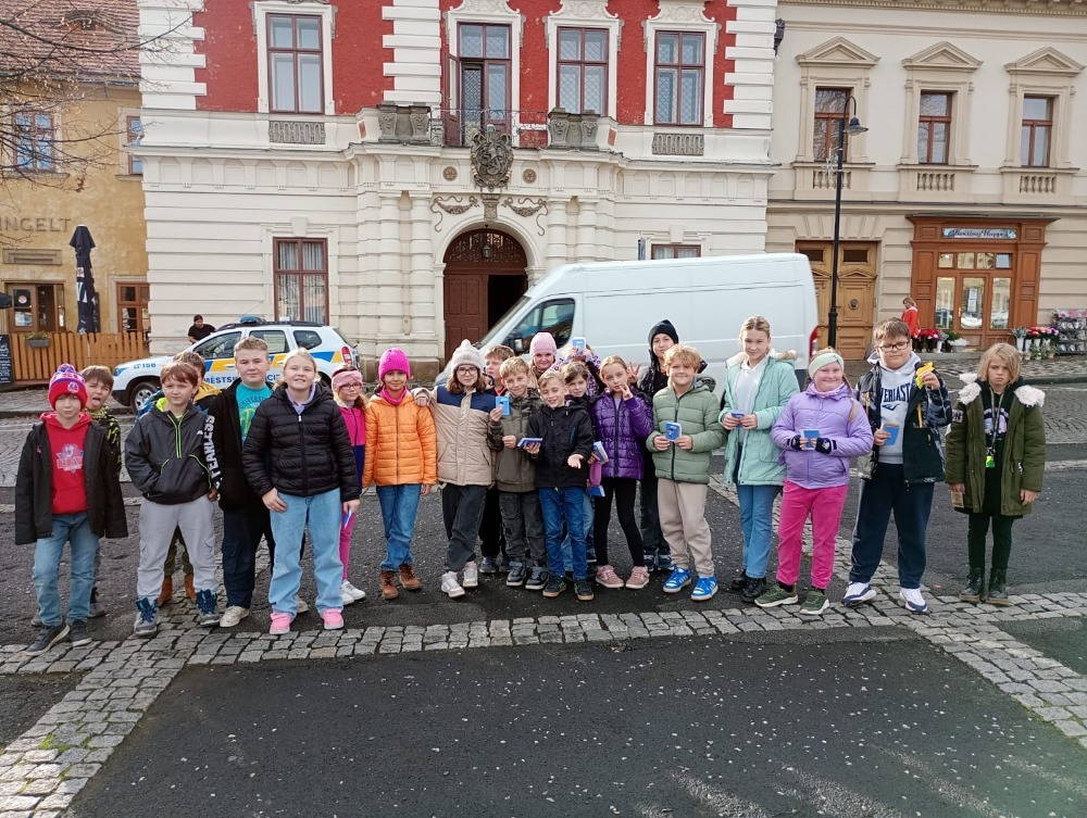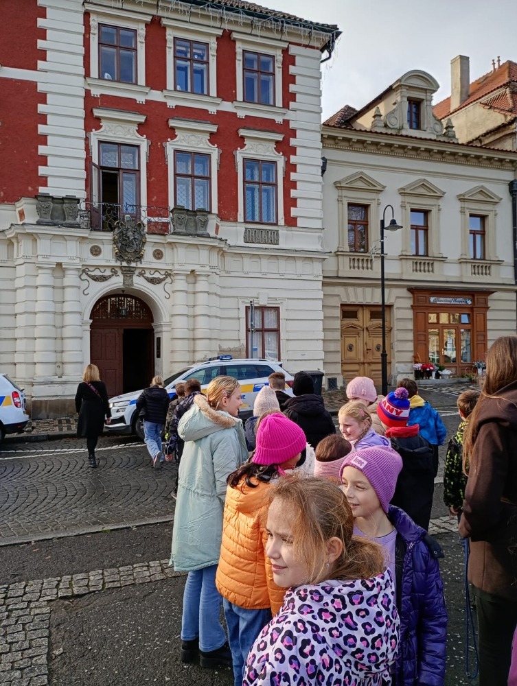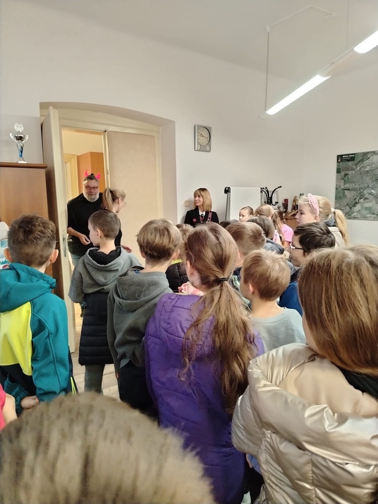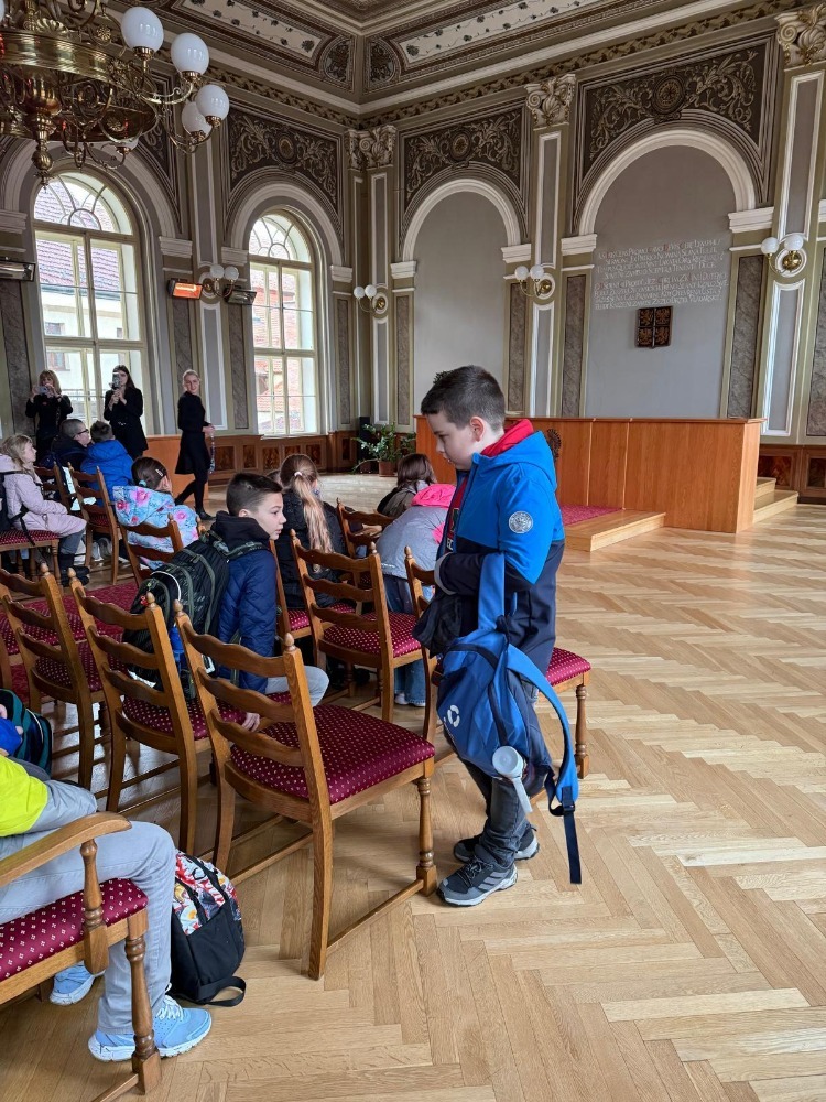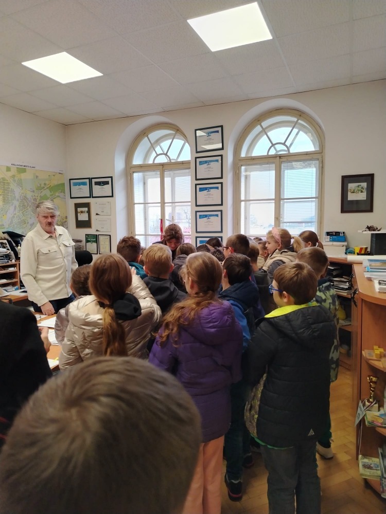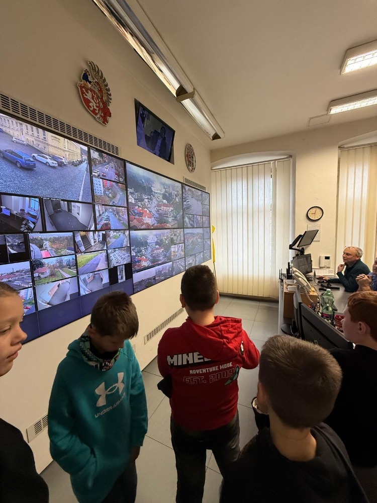 Děti si mohly prohlédnout nejhezčí místnost na úřadu, kterou je obřadní síň a byly nadšené zejména z návštěvy u pana starosty Mgr. Martina Hrabánka v jeho kanceláři, kde si mohly prohlédnout i městskou kroniku. Od paní Burešové ze Správního odboru se žáci dozvěděli spoustu zajímavostí o volbách a mohli nahlédnout do prostor, kde se vydávají občanské průkazy a pasy. Celý program vyvrcholil návštěvou Městské policie. Tam na žáky čekala nejen prohlídka moderního kamerového systému, ale také poutavá ukázka práce strážníků, kteří dětem připomněli zásady bezpečného chování. Na záběrech z kamerového systému mohli žáci pozorovat, co se právě děje u jejich školy. Projektový den se určitě vydařil.