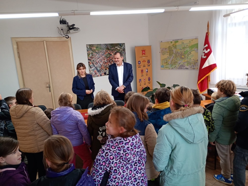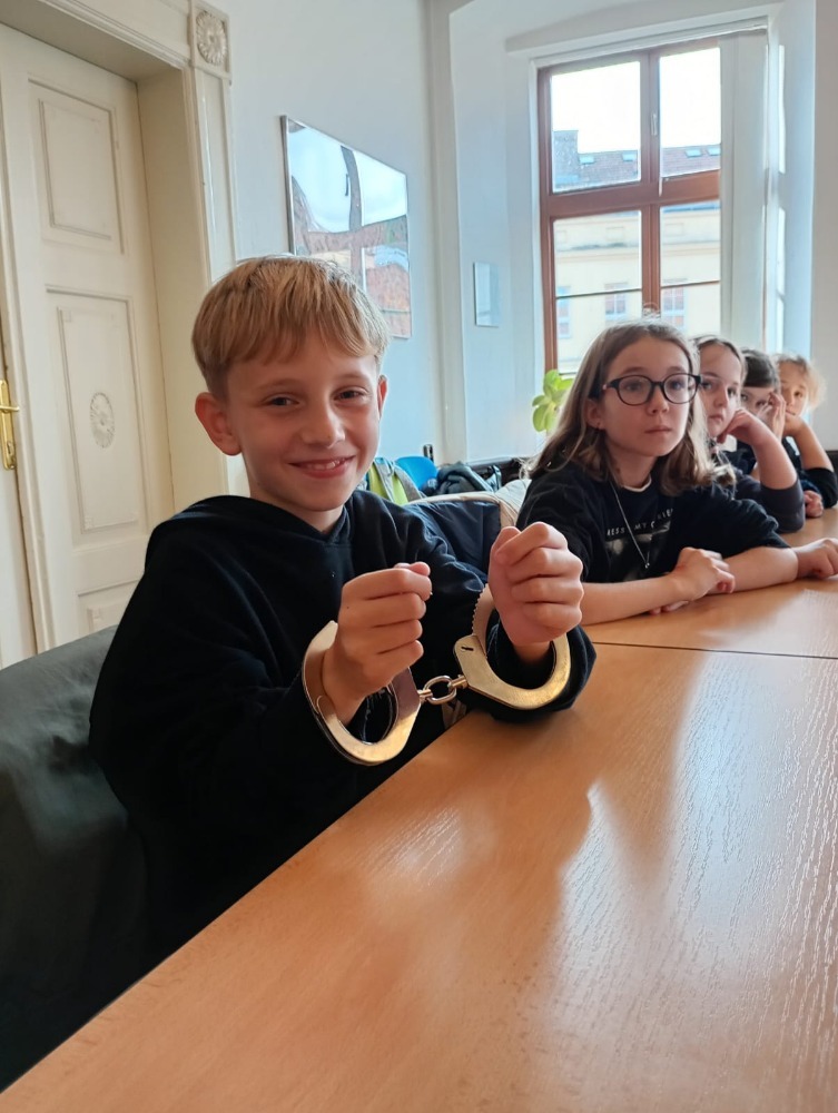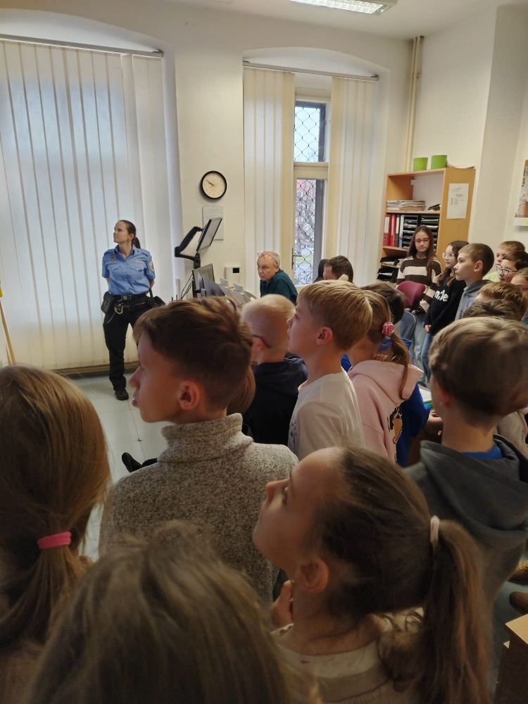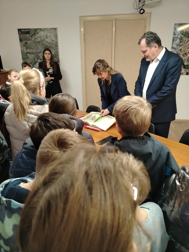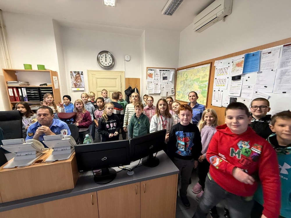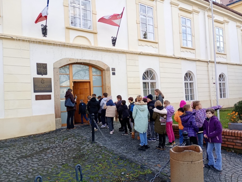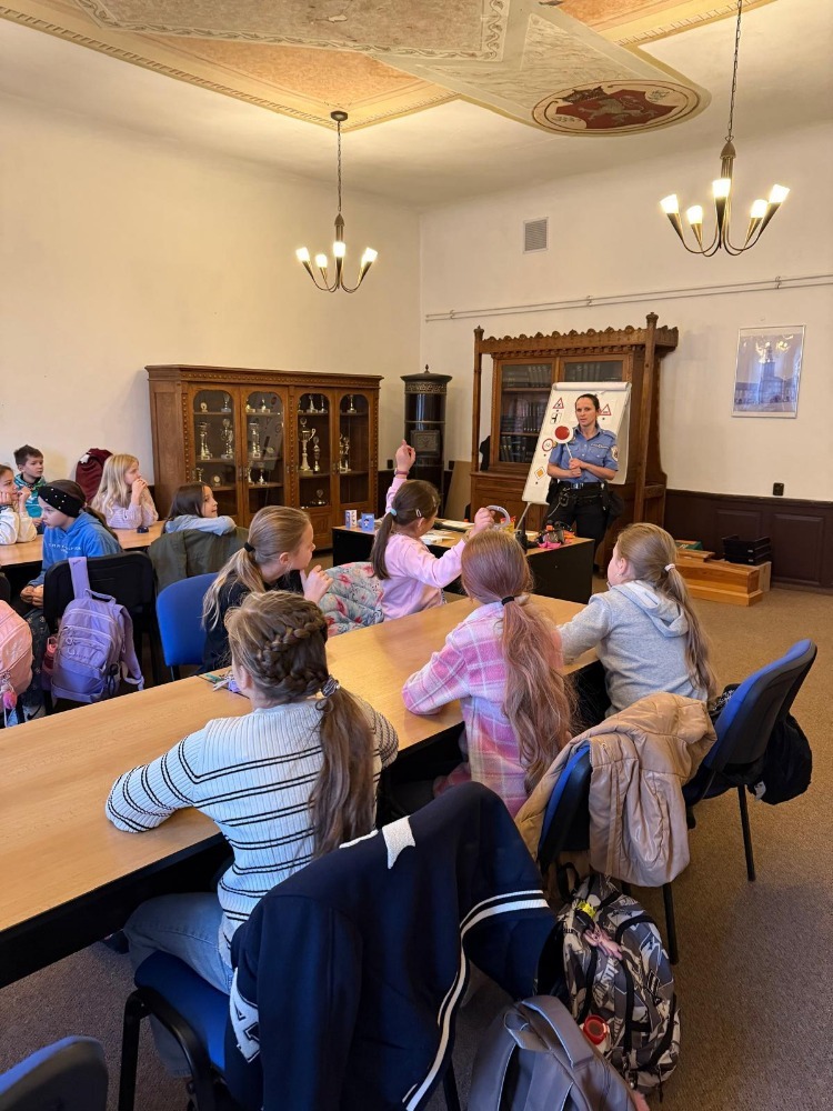 Děti si mohly prohlédnout nejhezčí místnost na úřadu, kterou je obřadní síň a byly nadšené zejména z návštěvy u pana starosty Mgr. Martina Hrabánka v jeho kanceláři, kde si mohly prohlédnout i městskou kroniku. Od paní Burešové ze Správního odboru se žáci dozvěděli spoustu zajímavostí o volbách a mohli nahlédnout do prostor, kde se vydávají občanské průkazy a pasy. Celý program vyvrcholil návštěvou Městské policie. Tam na žáky čekala nejen prohlídka moderního kamerového systému, ale také poutavá ukázka práce strážníků, kteří dětem připomněli zásady bezpečného chování. Na záběrech z kamerového systému mohli žáci pozorovat, co se právě děje u jejich školy. Projektový den se určitě vydařil.