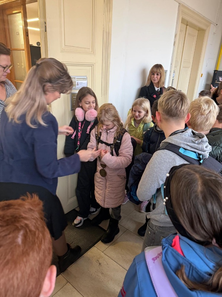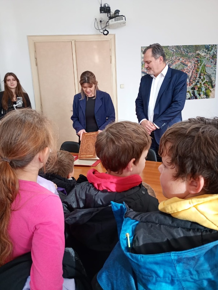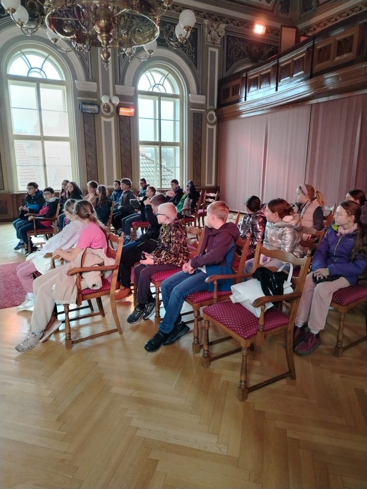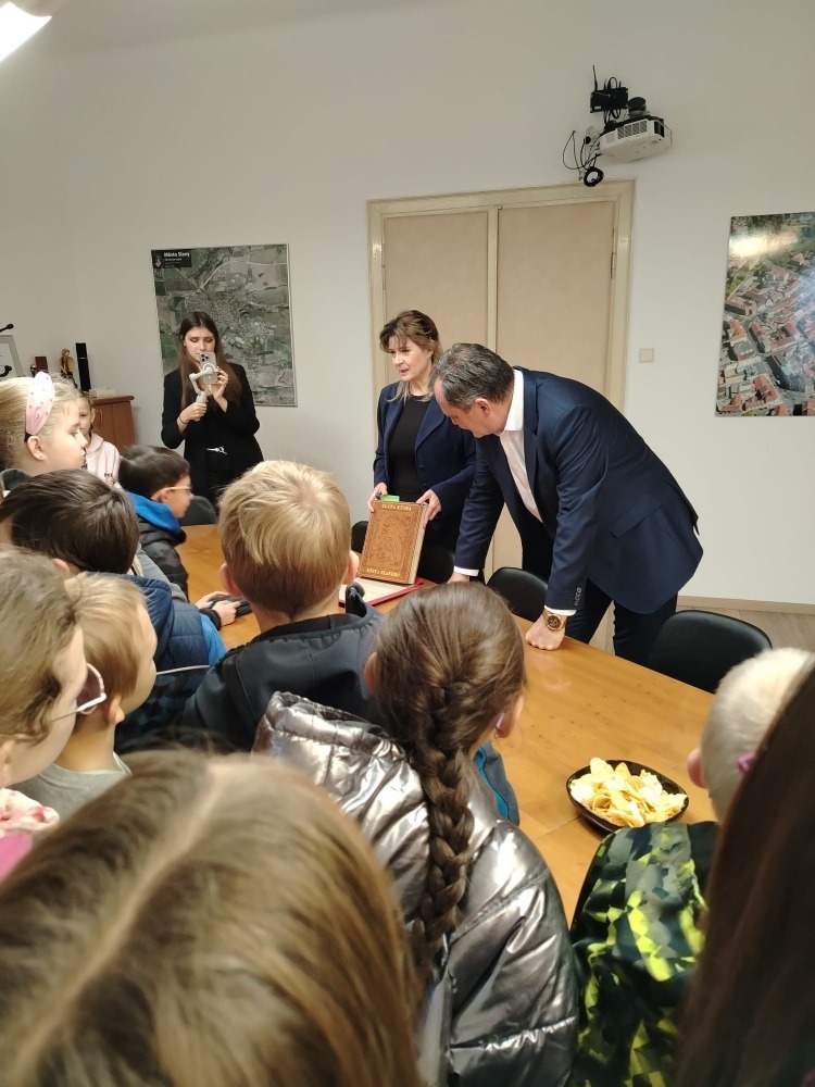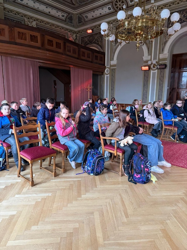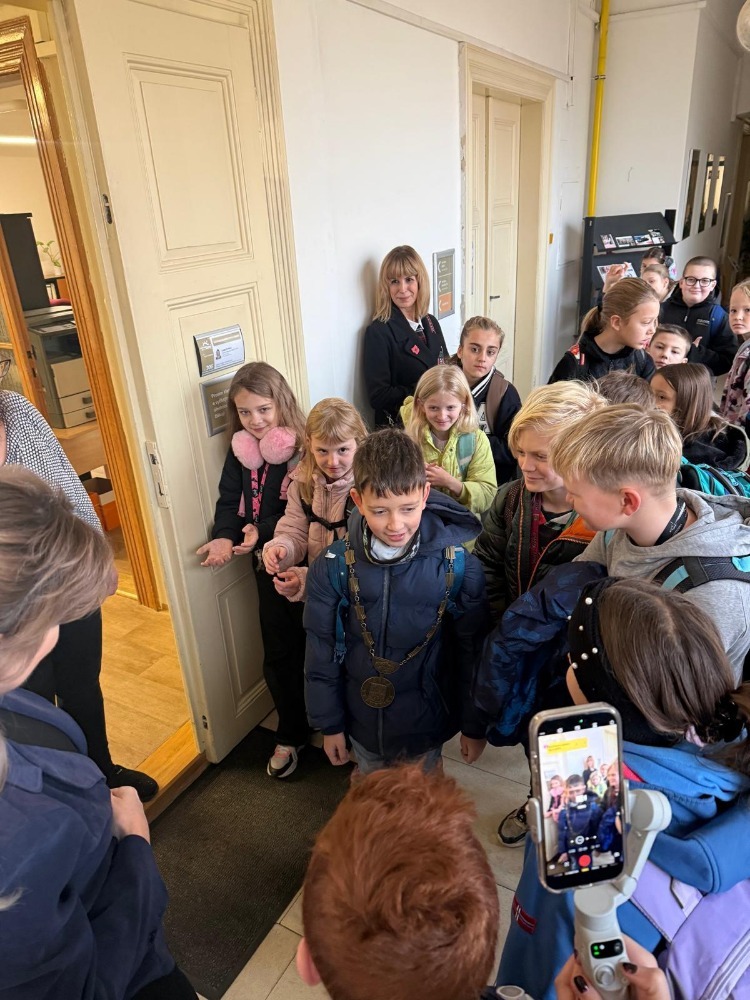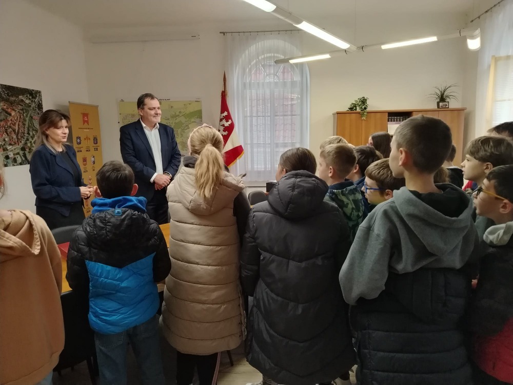 Děti si mohly prohlédnout nejhezčí místnost na úřadu, kterou je obřadní síň a byly nadšené zejména z návštěvy u pana starosty Mgr. Martina Hrabánka v jeho kanceláři, kde si mohly prohlédnout i městskou kroniku. Od paní Burešové ze Správního odboru se žáci dozvěděli spoustu zajímavostí o volbách a mohli nahlédnout do prostor, kde se vydávají občanské průkazy a pasy. Celý program vyvrcholil návštěvou Městské policie. Tam na žáky čekala nejen prohlídka moderního kamerového systému, ale také poutavá ukázka práce strážníků, kteří dětem připomněli zásady bezpečného chování. Na záběrech z kamerového systému mohli žáci pozorovat, co se právě děje u jejich školy. Projektový den se určitě vydařil.