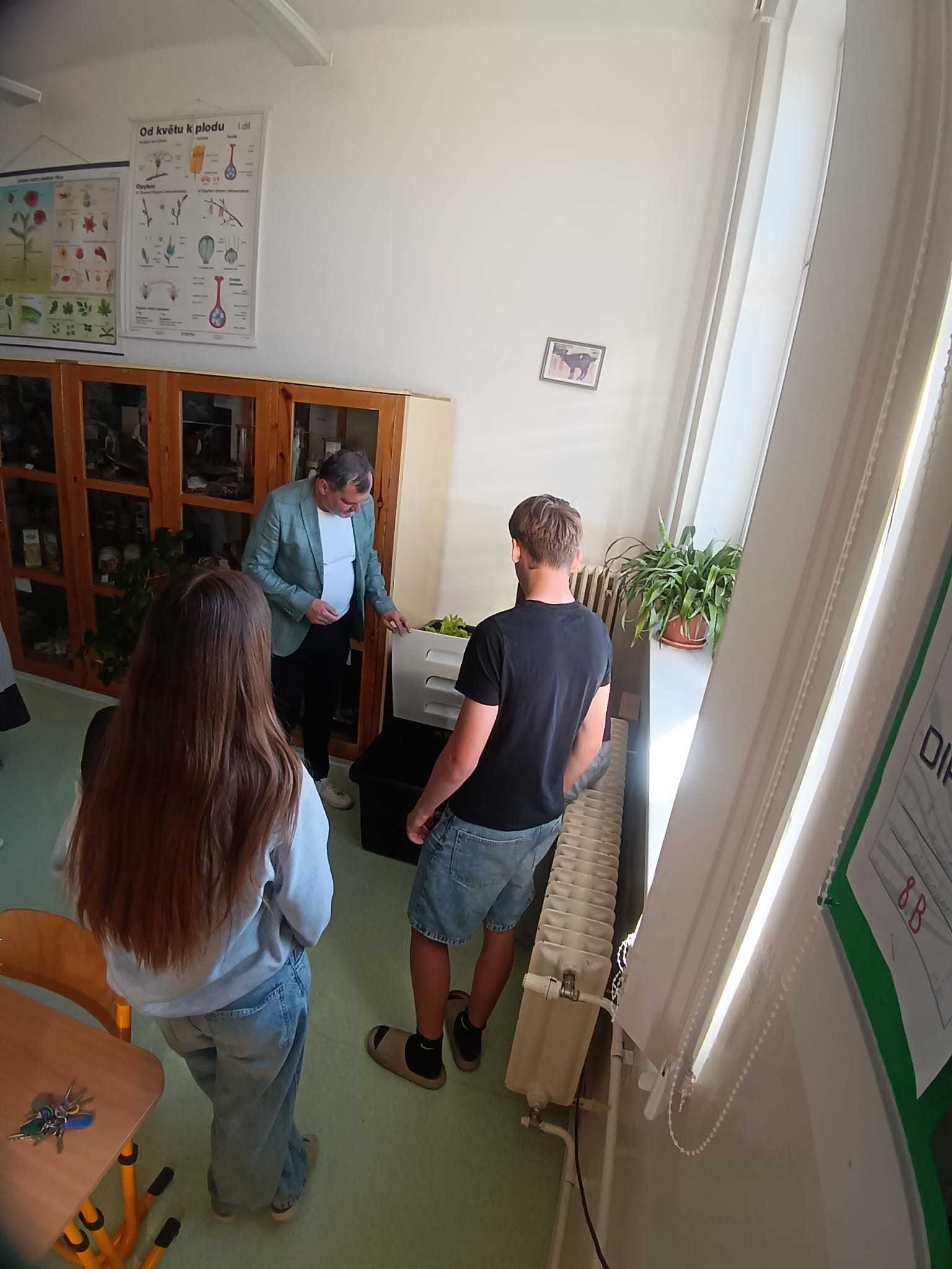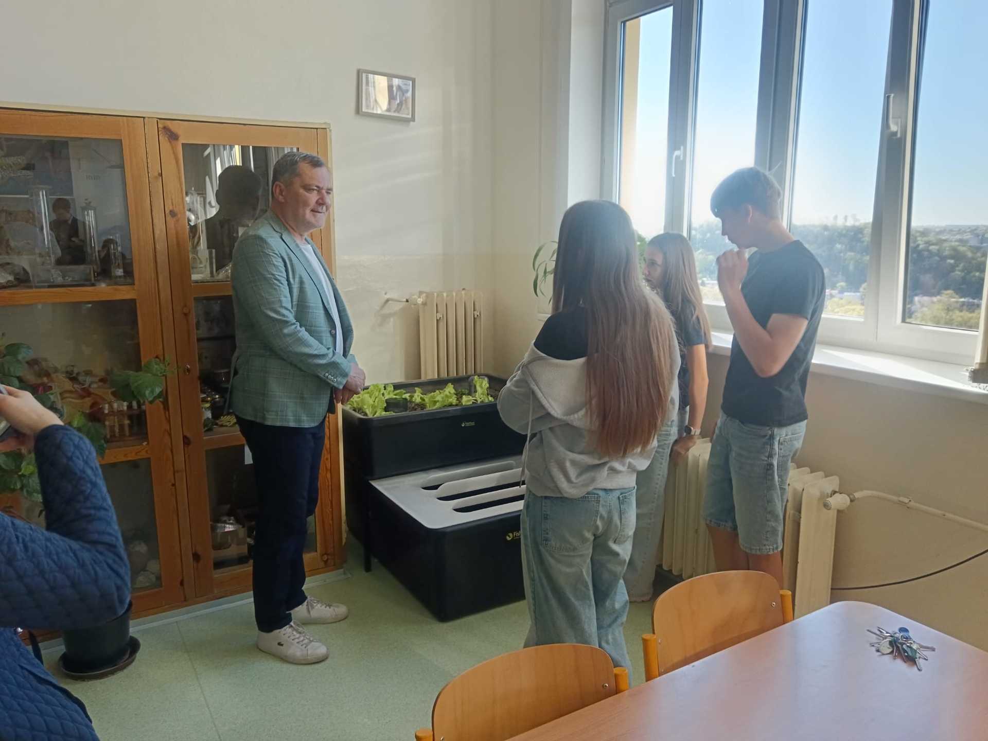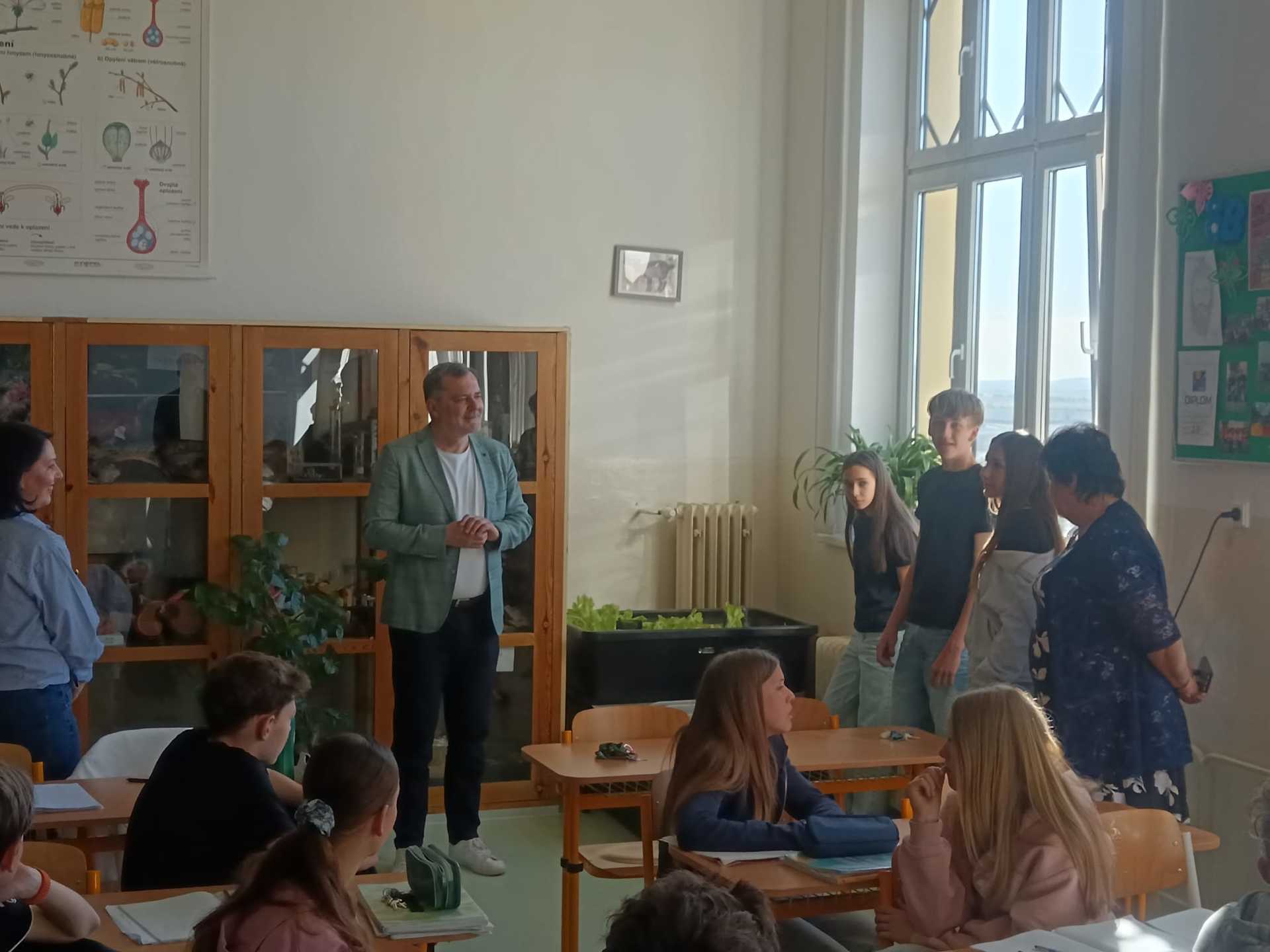 Důvodem jeho návštěvy bylo seznámení se s vítězem projektu „30 000 do škol“. Tento projekt je iniciativou města Slaný, která podporuje kreativitu žáků a studentů slánských škol. Vítězný návrh – aquaponii, prezentovala Světla Schejbalová, Nela Sekeráková a Jakub Rubeš ze třídy 8. B. Žáci seznámili pana starostu s konkrétním fungováním a principem aquaponie, pěstovanými rostlinami a rybami. A také poděkovali za možnost realizovat tento projekt.