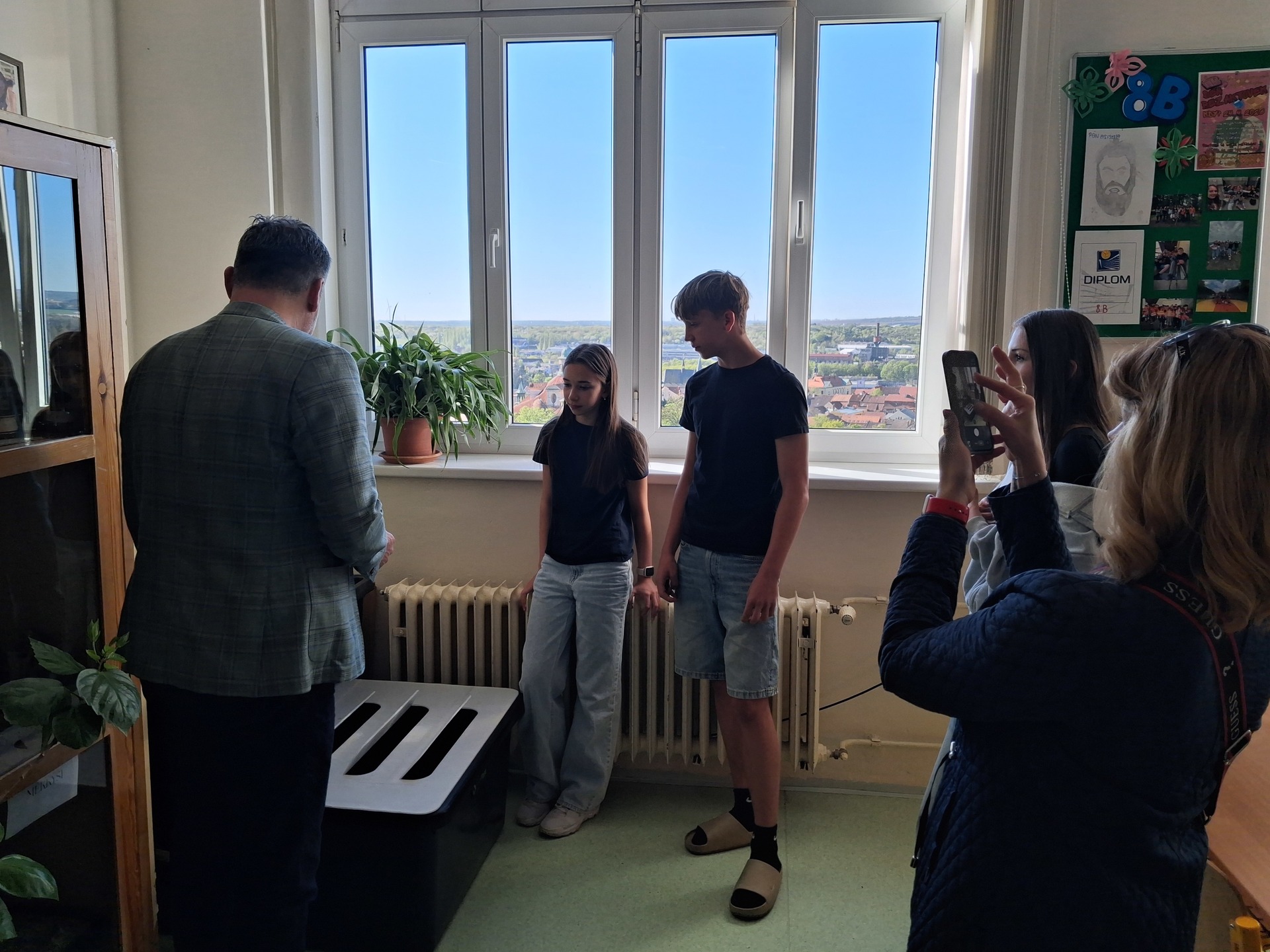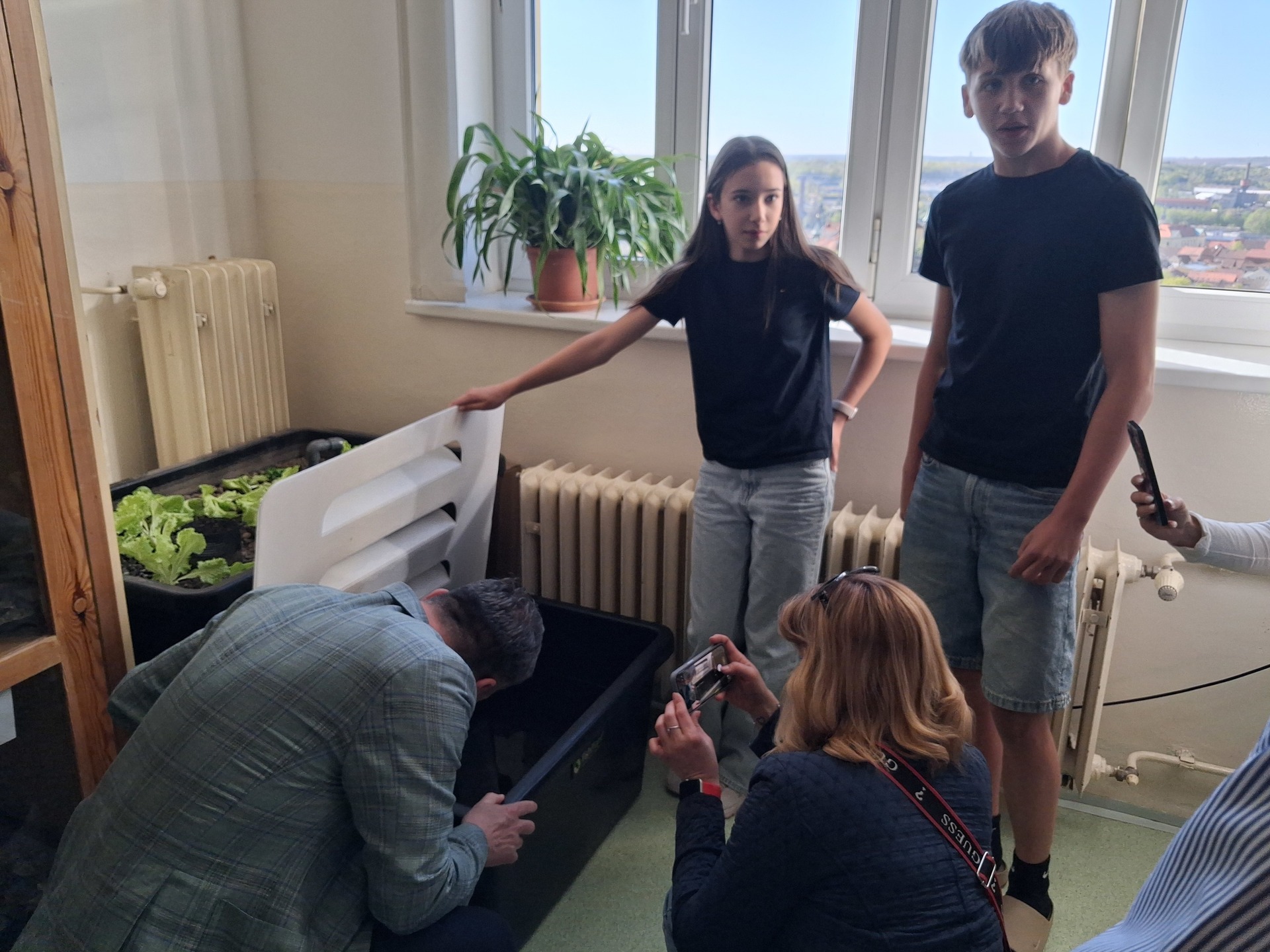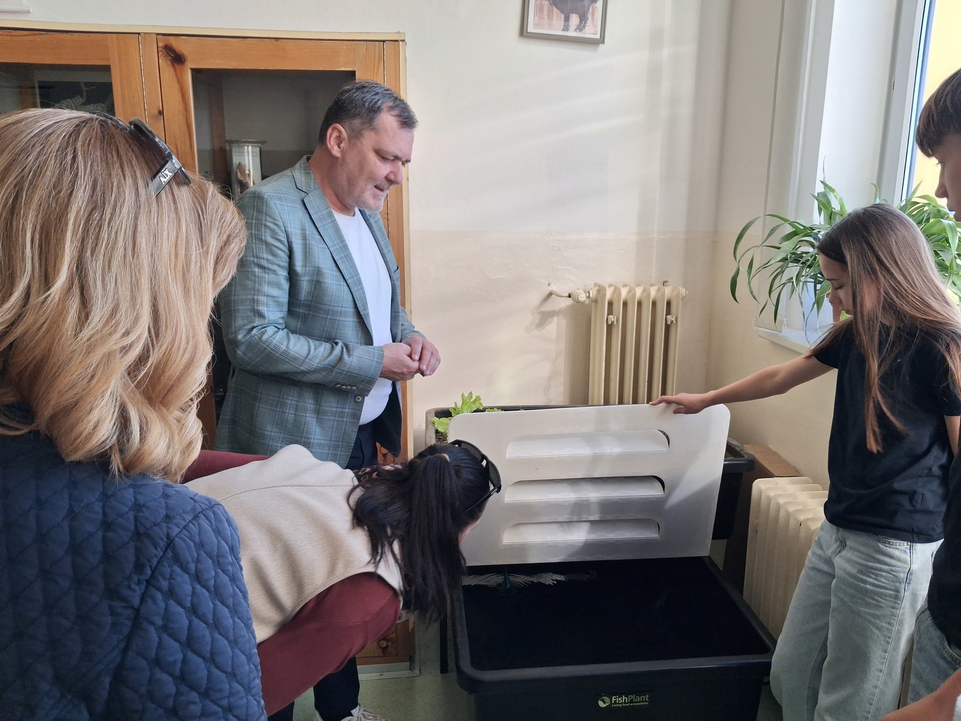 Důvodem jeho návštěvy bylo seznámení se s vítězem projektu „30 000 do škol“. Tento projekt je iniciativou města Slaný, která podporuje kreativitu žáků a studentů slánských škol. Vítězný návrh – aquaponii, prezentovala Světla Schejbalová, Nela Sekeráková a Jakub Rubeš ze třídy 8. B. Žáci seznámili pana starostu s konkrétním fungováním a principem aquaponie, pěstovanými rostlinami a rybami. A také poděkovali za možnost realizovat tento projekt.