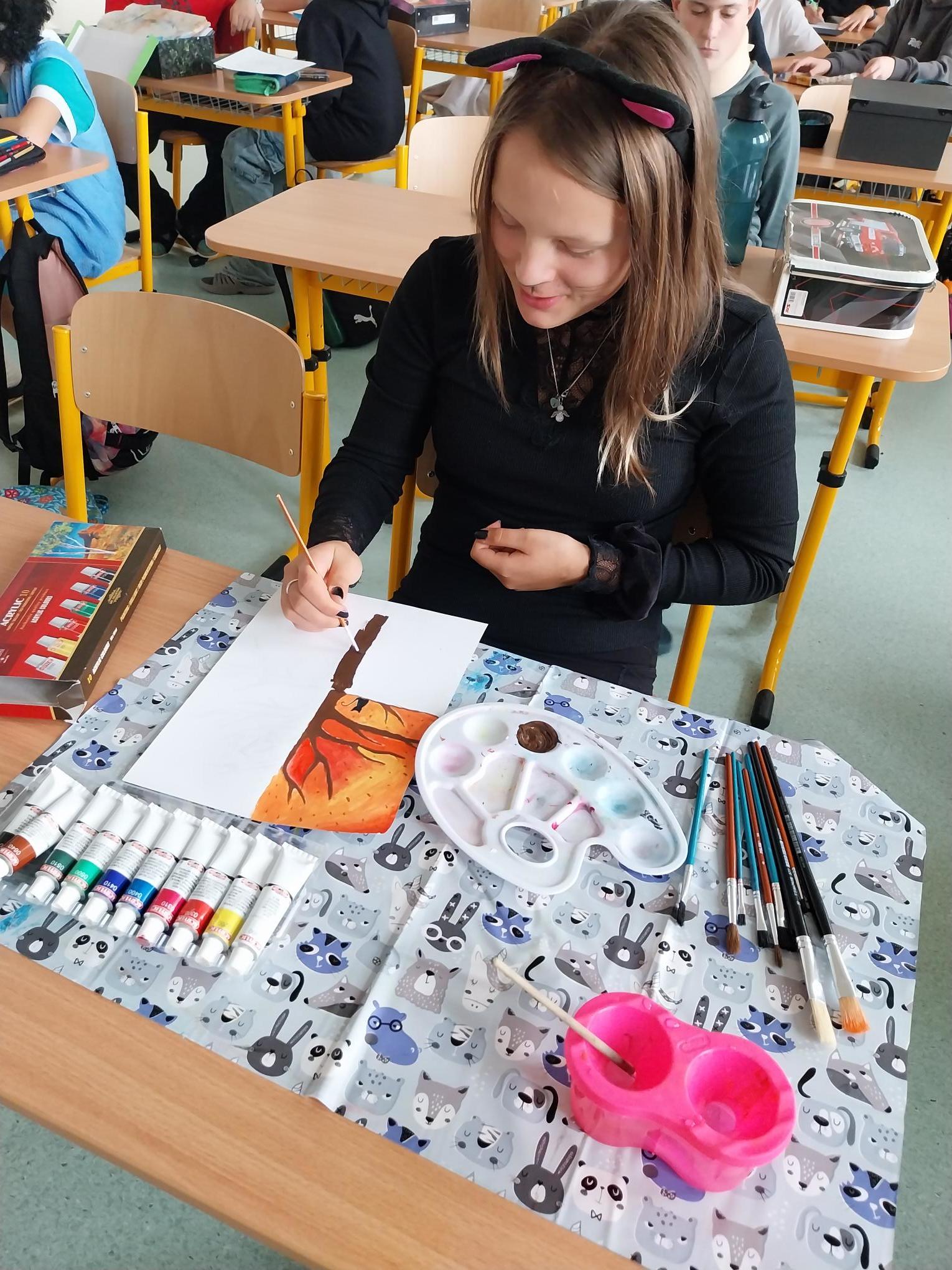 Právě podzimní barevnost a pestrost se stala námětem ve výtvarné výchově napříč všemi ročníky druhého stupně.