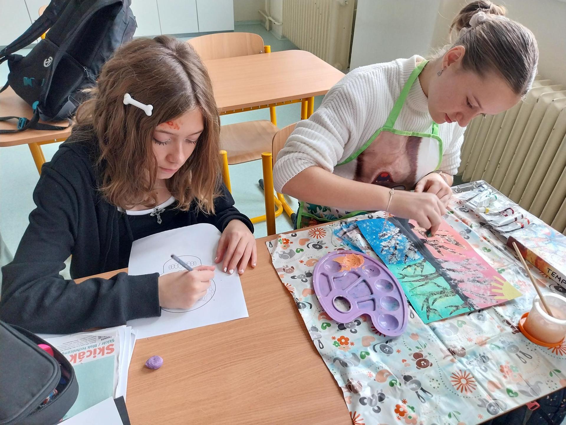 Žáci tak využili za pomoci různých výtvarných technik svůj osobitý projev a přístup. Také uplatnili znalosti o základních a doplňkových barvách.