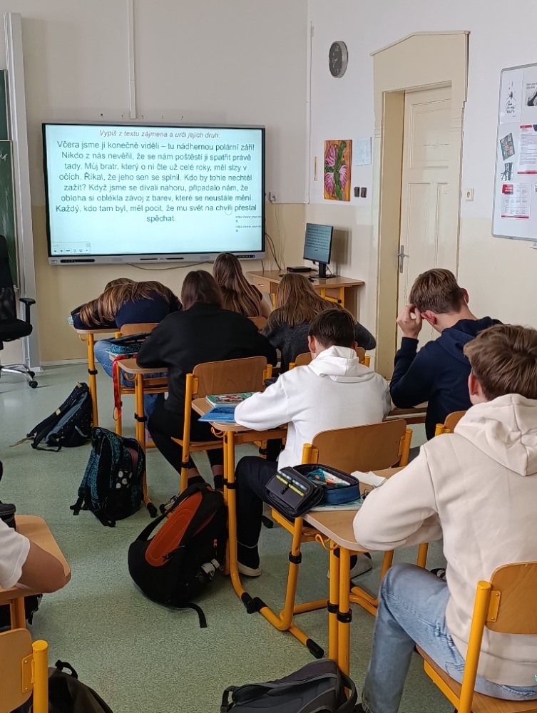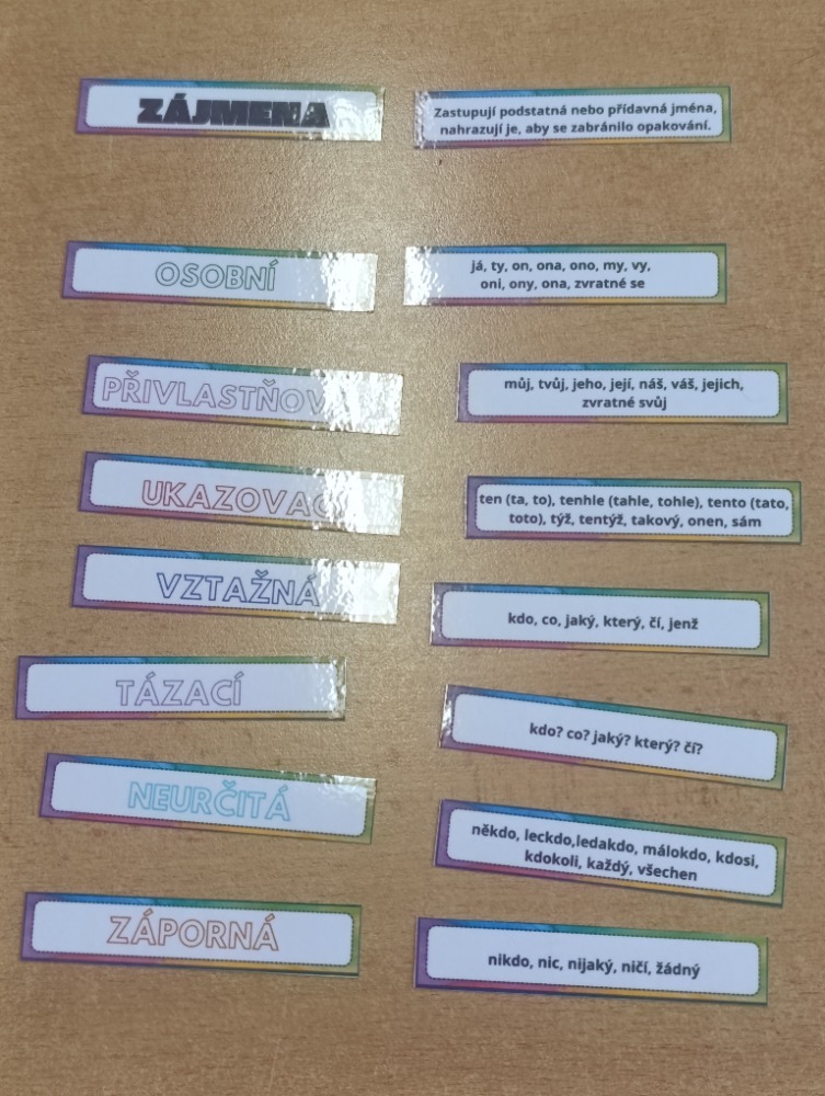 Žáci vyhledávali zájmena a určovali jejich druh. Kdo si nebyl jistý, využil kartičky z první aktivity.