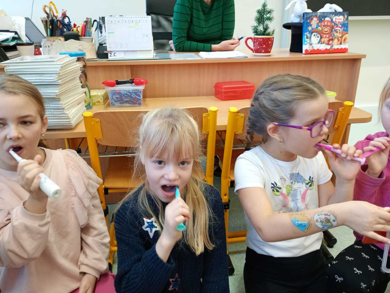 Součástí programu bylo také praktické vyzkoušení indikátoru zubního plaku, díky kterému děti viděly, jak důležité je věnovat čištění zubů dostatečnou pozornost. Pod vedením odbornice se poté učily techniku správného čištění, aby jejich úsměvy zůstaly zdravé a zářivé.