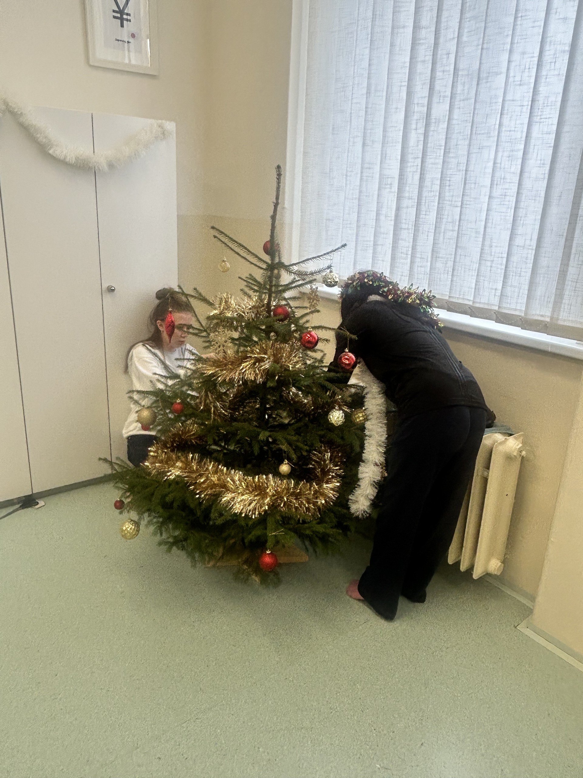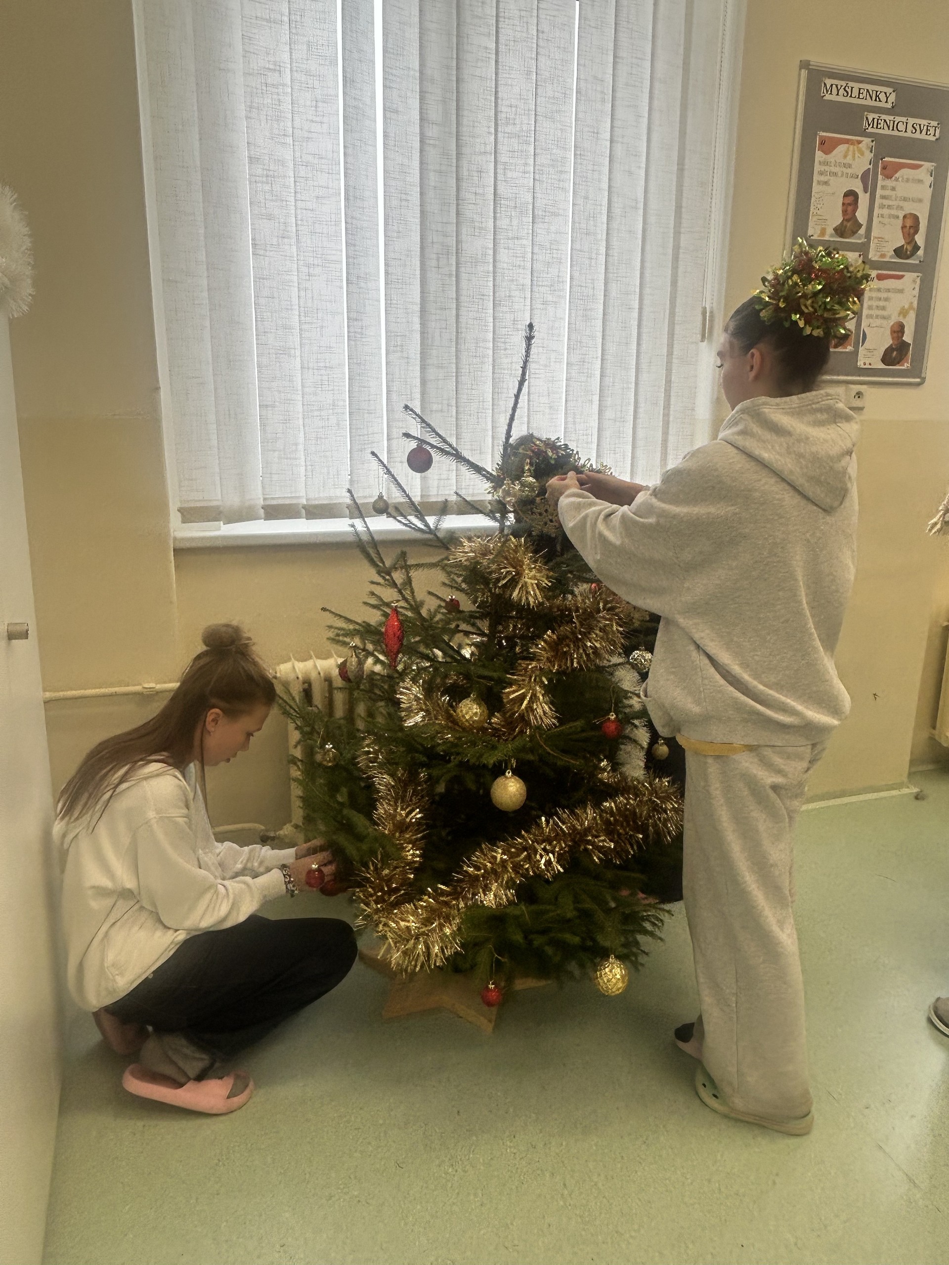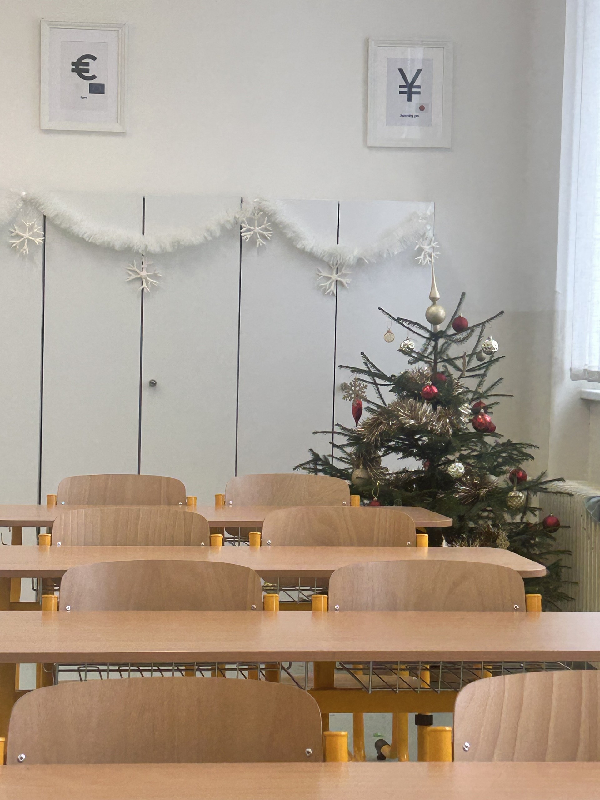 V rohu učebny máme vánoční stromek, který si děti samy ozdobily. Na nábytku a ve třídě jsou zavěšené sněhové vločky z vlny, které žáci vyráběli během hodin i o přestávkách. Je vidět, že se žáci na Vánoce opravdu těší – v povídání často zaznívají oblíbené tradice a společně už vyhlížíme i zasloužené vánoční prázdniny.