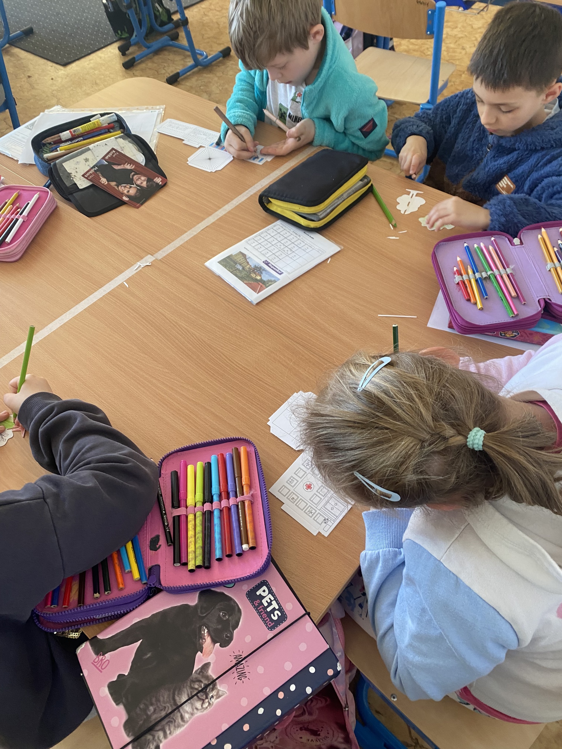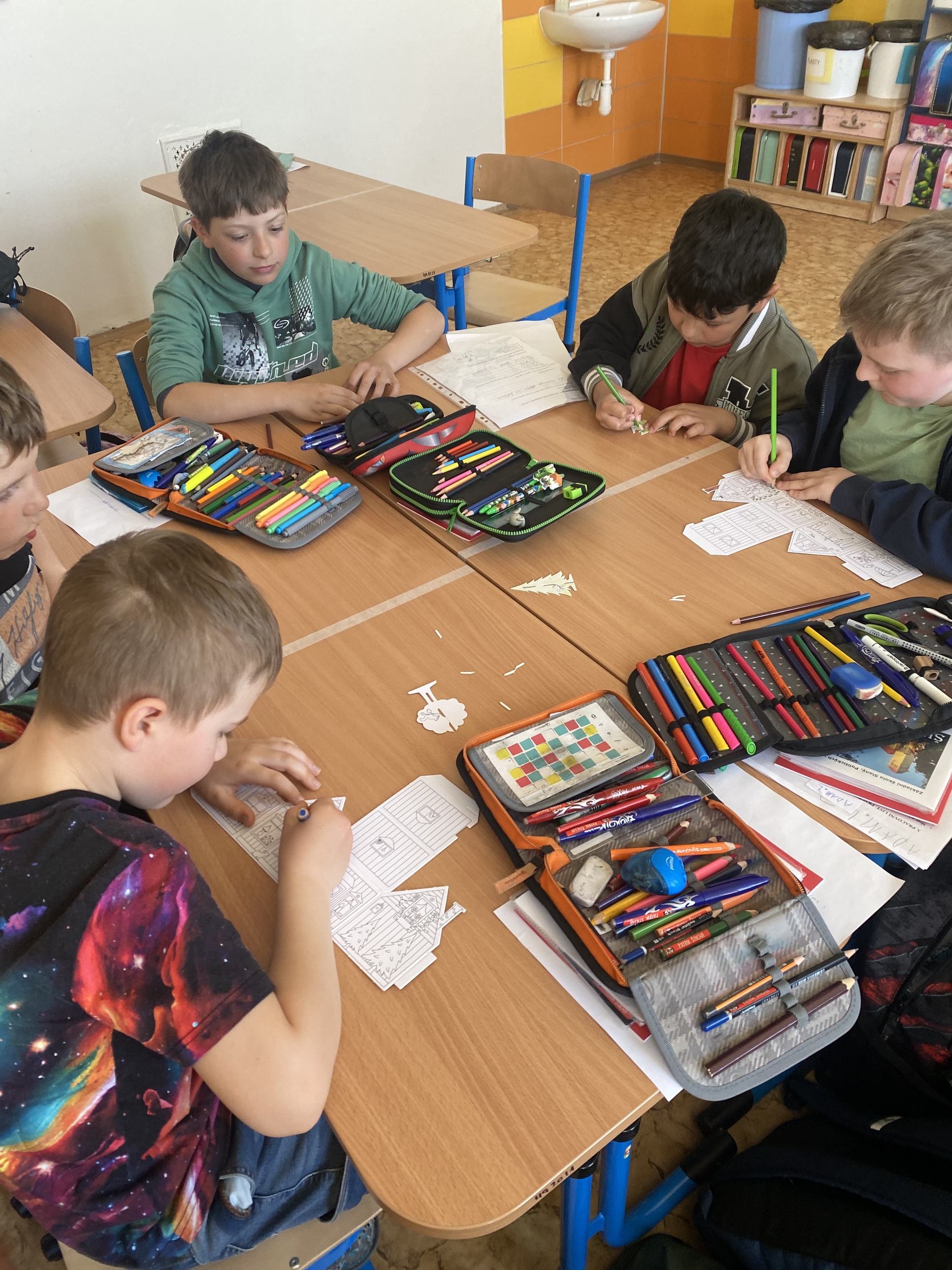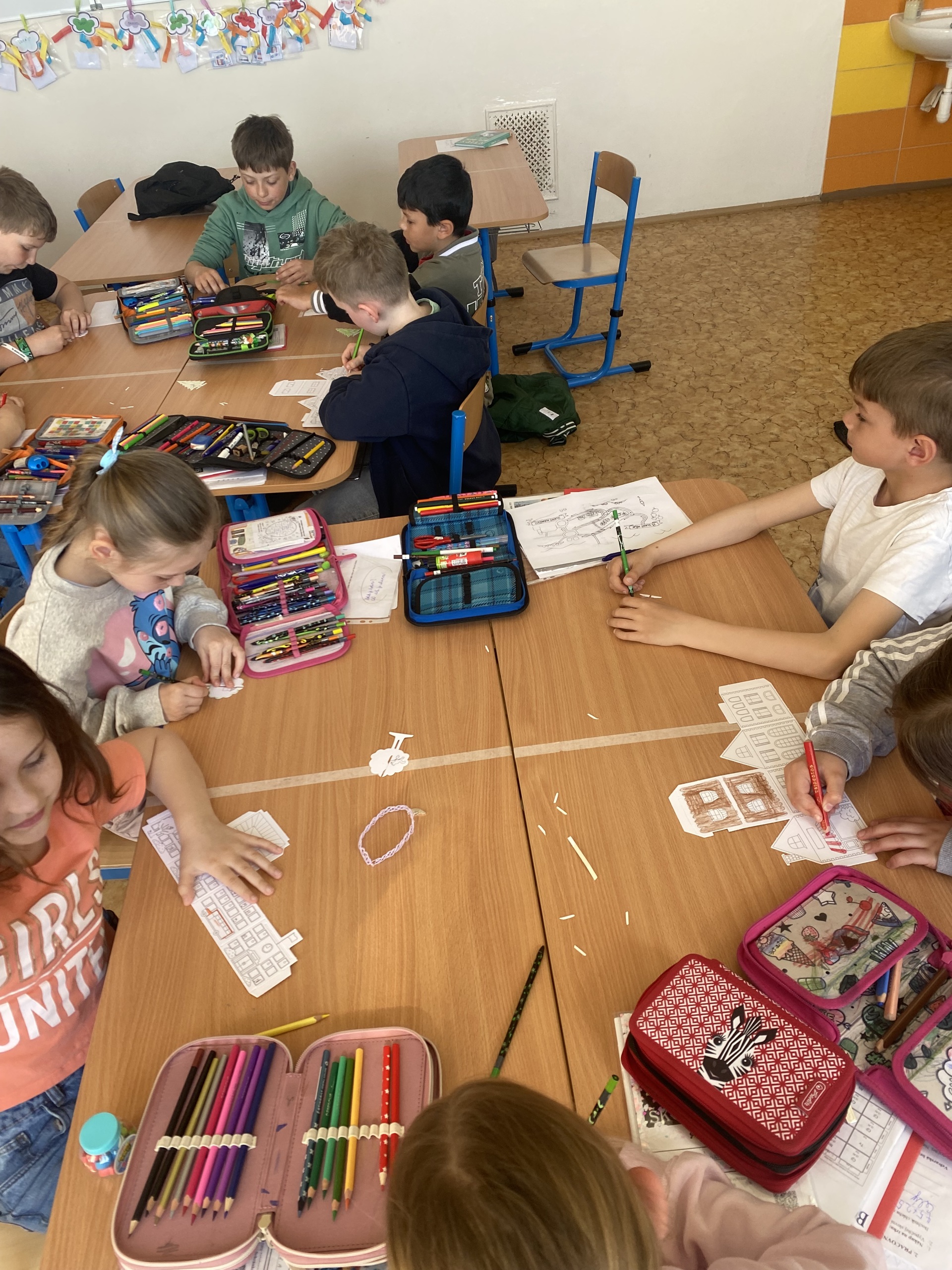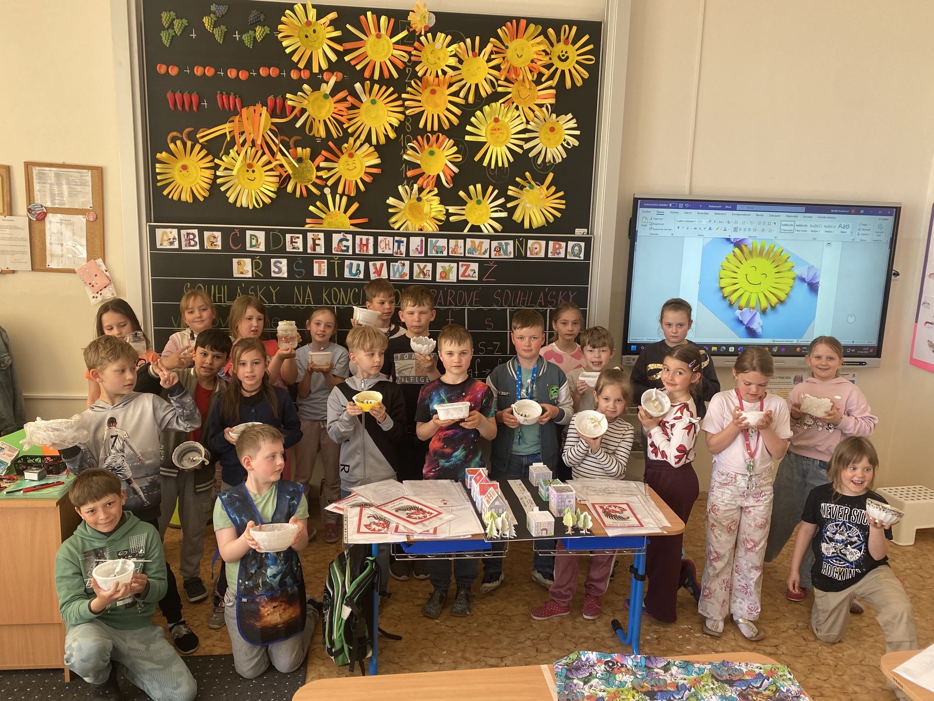 A co všechno jsme společně zažili? Naše putování začalo u čtenářské gramotnosti. Ponořili jsme se do starých pověstí o založení našeho města a zjistili jsme, jak důležité je porozumět psanému slovu. Abychom se cítili jako skuteční středověcí mistři, vyzkoušeli jsme si techniku iluminace. Každý si vytvořil své vlastní zdobené počáteční písmeno jména, které vypadá jako z královské listiny. Vypravili jsme se do ulic našeho města. Naše cesta do školy a po Slaném dostala nový rozměr – učili jsme se orientovat v mapě a poznávat významné památky. Teď už každý druhák ví, kde stojí Velvarská brána nebo k čemu sloužila radnice. Naše pozorování jsme pak přenesli na papír a vytvořili jsme si vlastní plány cest. Velkým zážitkem byly pokusy! Abychom pochopili, proč se naše město jmenuje Slaný, proměnili jsme se v chemiky. Sledovali jsme krystalizaci soli a proces odpařování. Vidět na vlastní oči, jak z „obyčejné“ vody vznikají bílé krystaly, bylo pro mnohé z nás kouzelné. Chemie nás zkrátka nadchla! V hodinách praktických činností jsme nezůstali jen u teorie. Stavěli jsme modely budov a plánovali celé ulice. Děti si vyzkoušely, jaké to je postavit model města. A co jsme se naučili? Projekt nám ukázal, že učení není jen o sešitech. Děti se do všech aktivit zapojovaly s obrovskou chutí a úsměvem na tváři. Nejenže si rozšířily obzory o nové poznatky z historie a přírodních věd, ale hlavně zjistily, že když spolupracují, dokážou opravdu všechno. Děkuji všem dětem za jejich nadšení a kreativitu. Všichni se už těšíme na další společné objevování!