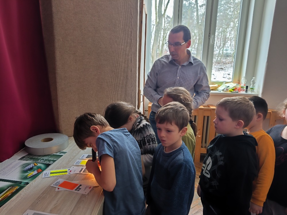 Do školy přišel pan Ing. Aleš Rozenský, který předvedl dětem, jak je důležité být viděn a vidět za šera a za tmy. Žáci zhlédli zajímavá a poučná videa, prohlédli si reflexní materiály a vyzkoušeli obleky s reflexivními prvky. Po skončení si pak ve třídě povídali o tom, jaké svítící nášivky mají na taškách a na oblečení a také si to ukazovali. Naši žáci hodně vědí, ale po dnešku budou vědět mnohem více.