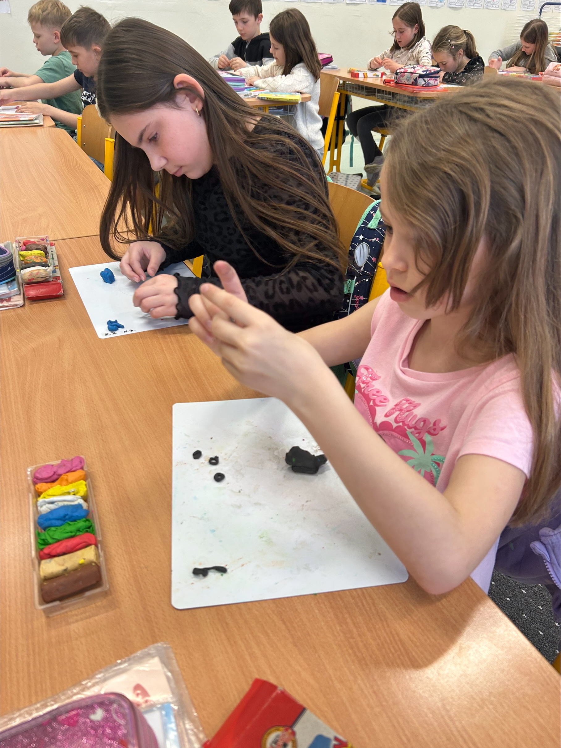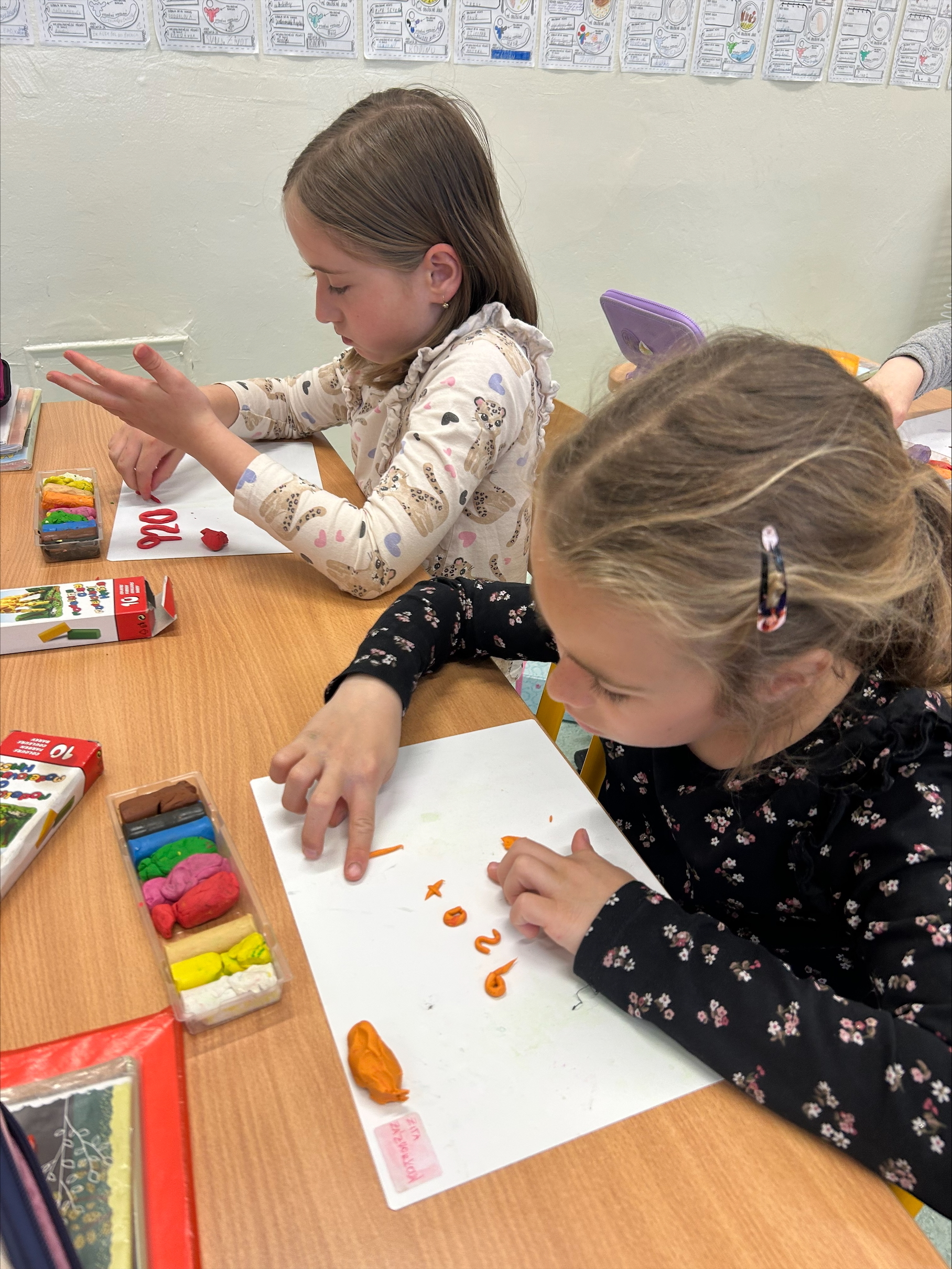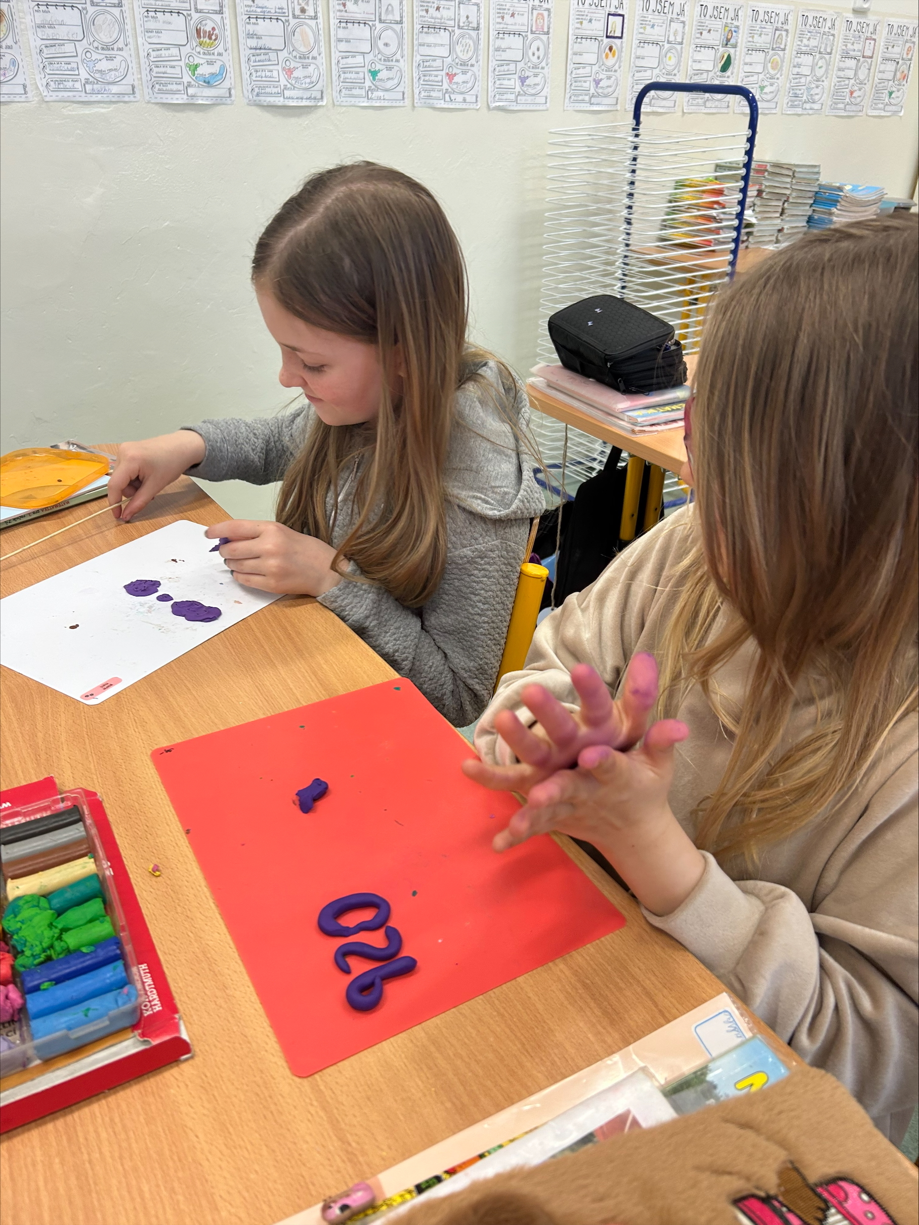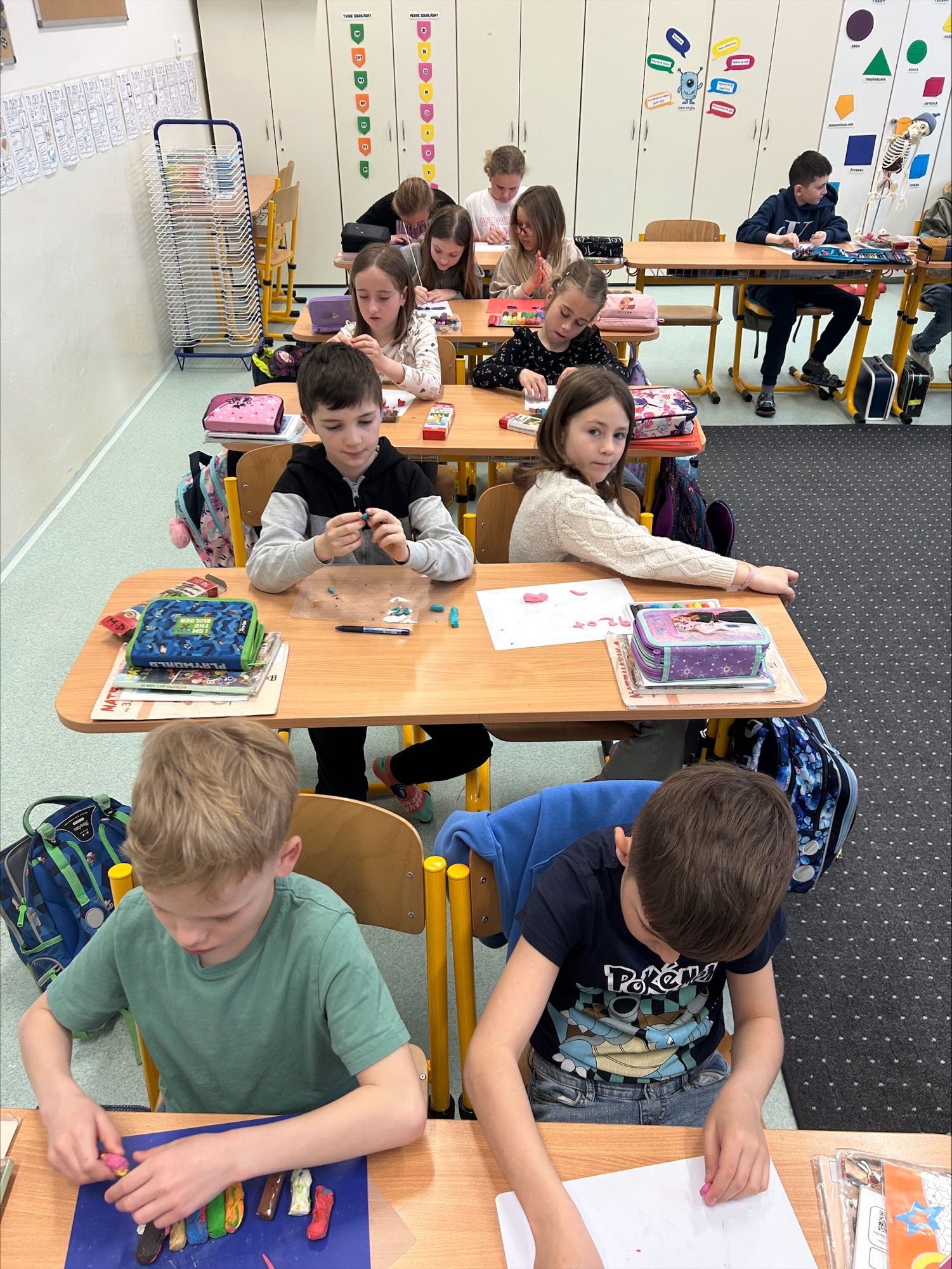 K psaní příkladů jsme využili modelovací hmotu, se kterou pracujeme velmi rádi. Pomocí modelíny jsme opisovali příklady a ty následně vyřešili. Tato aktivita nás nejen bavila, ale pomohla nám si učivo lépe zapamatovat.