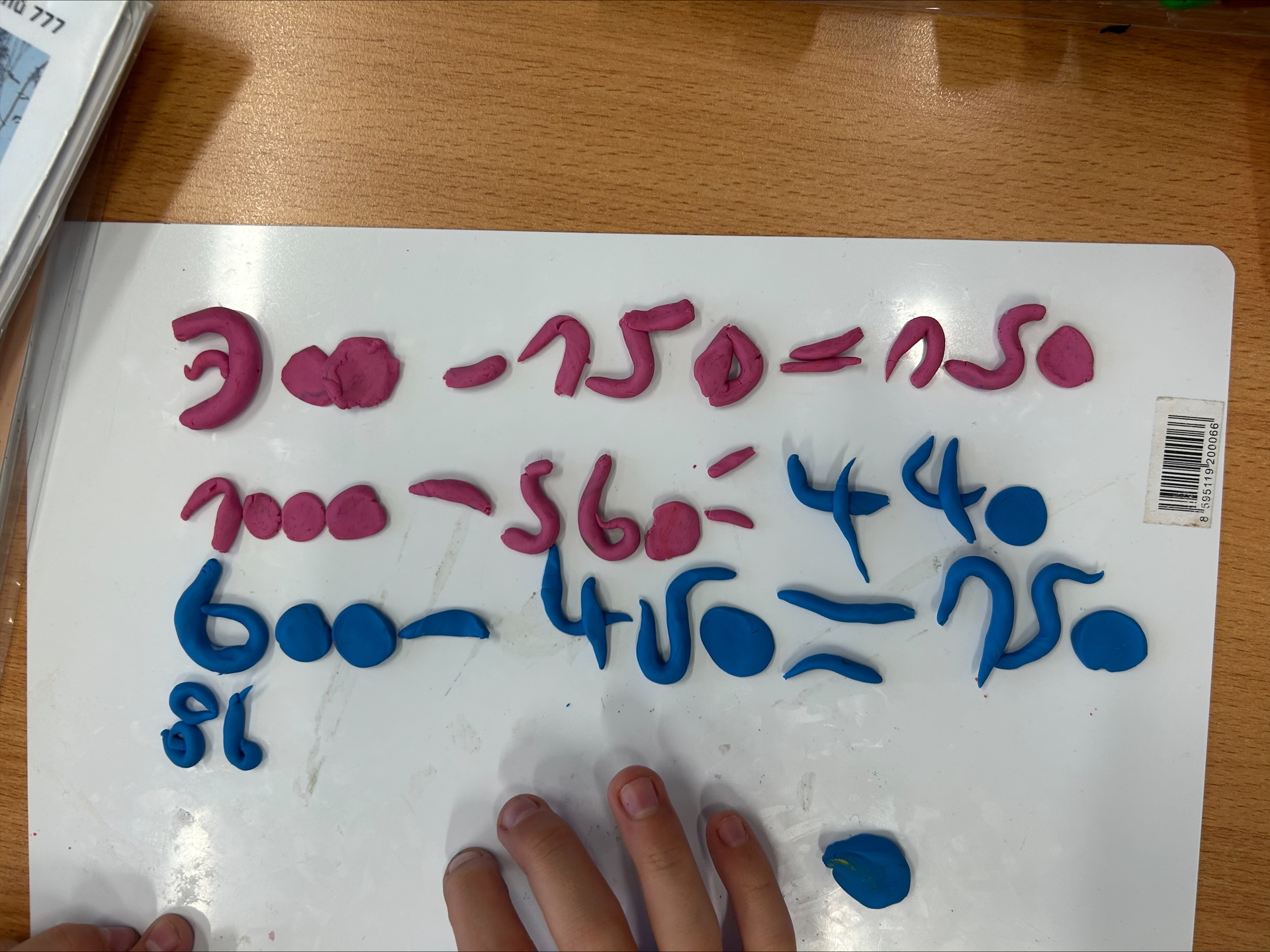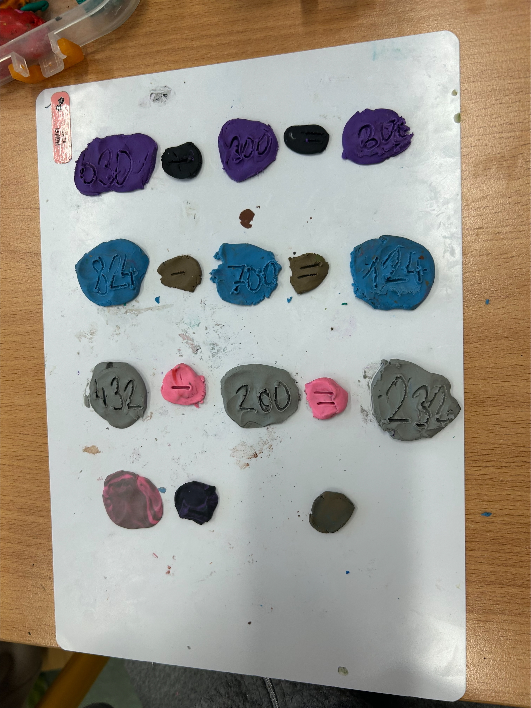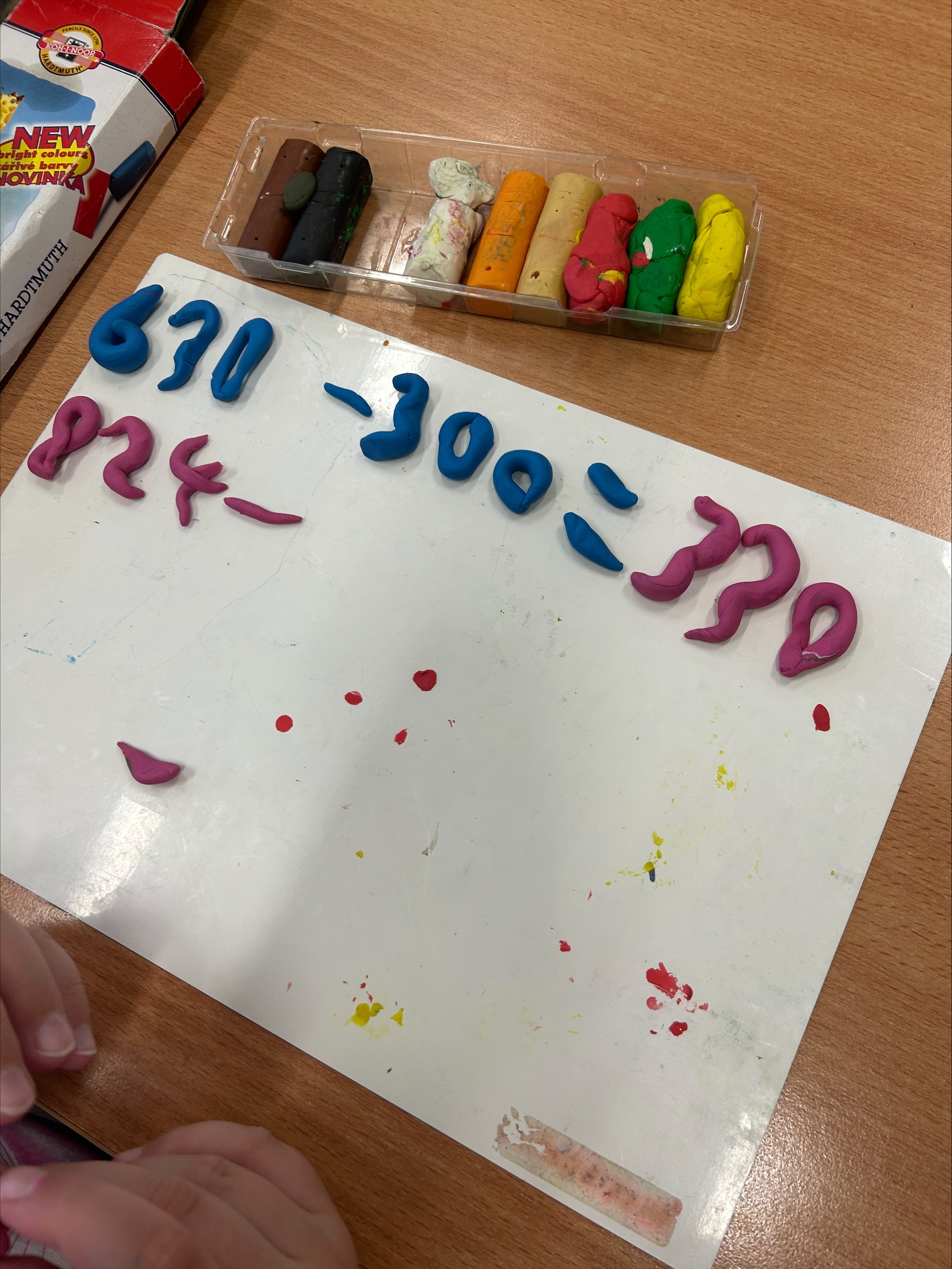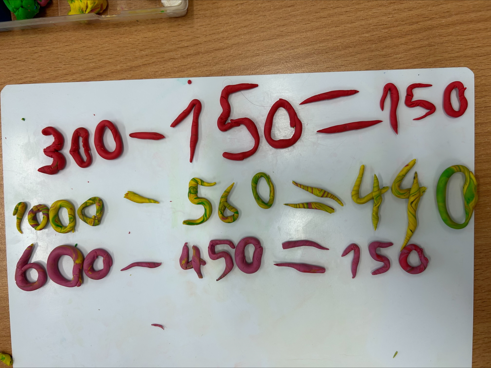 K psaní příkladů jsme využili modelovací hmotu, se kterou pracujeme velmi rádi. Pomocí modelíny jsme opisovali příklady a ty následně vyřešili. Tato aktivita nás nejen bavila, ale pomohla nám si učivo lépe zapamatovat.