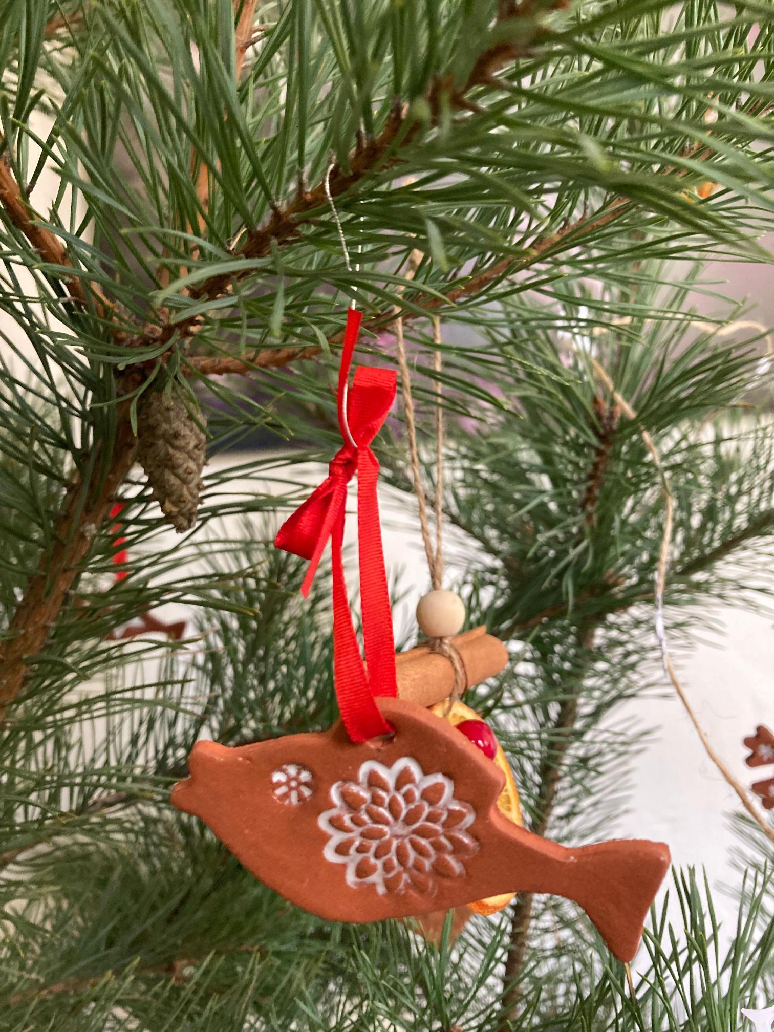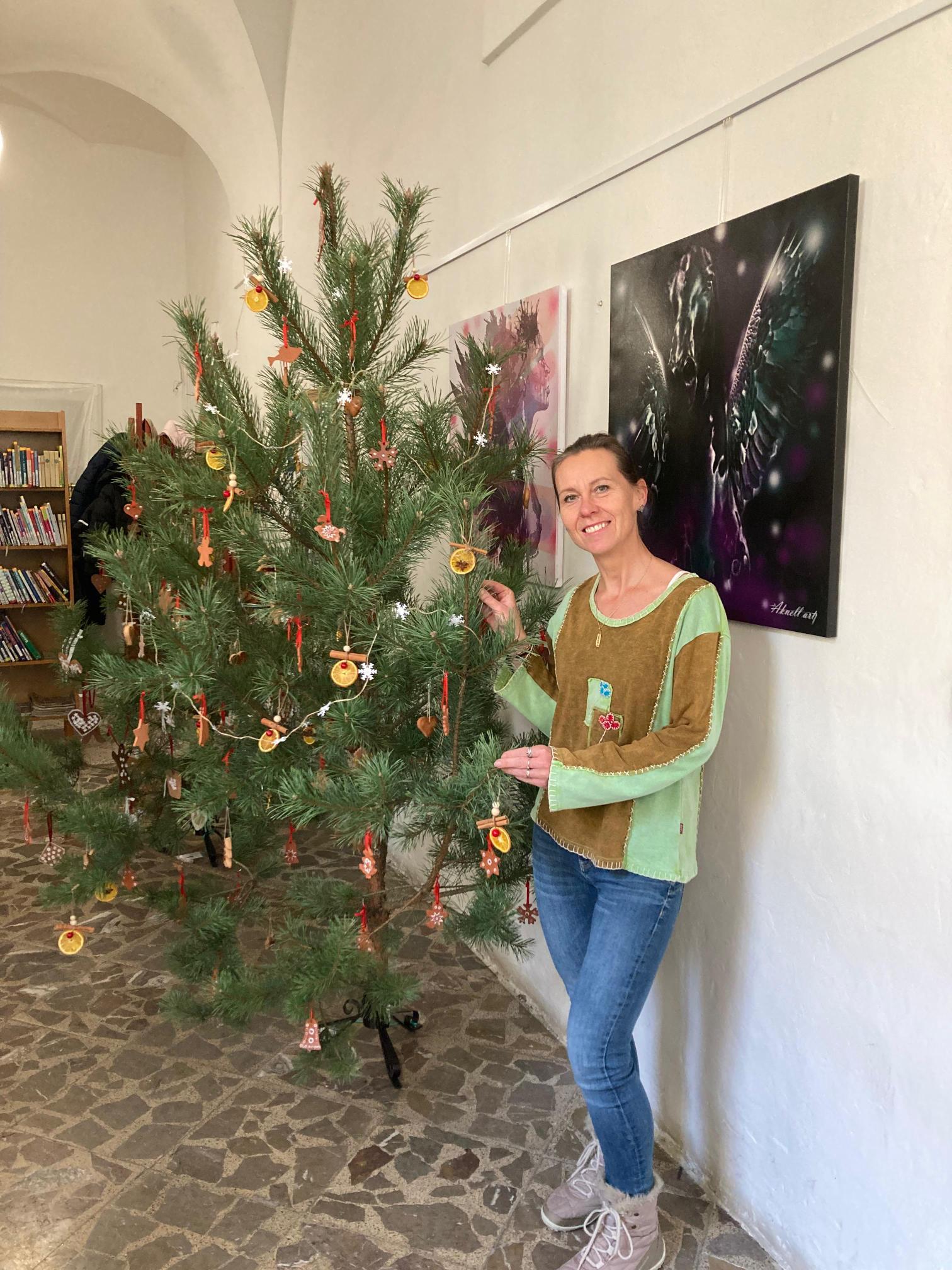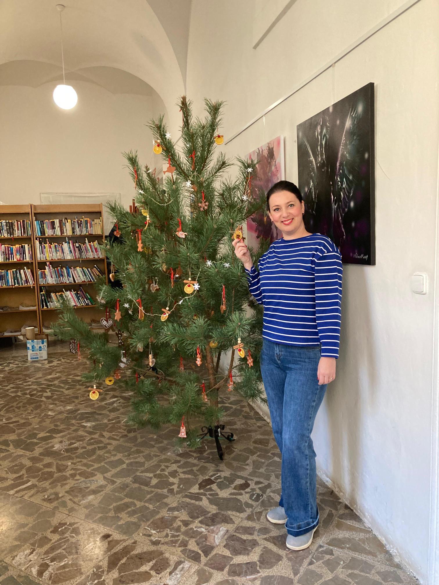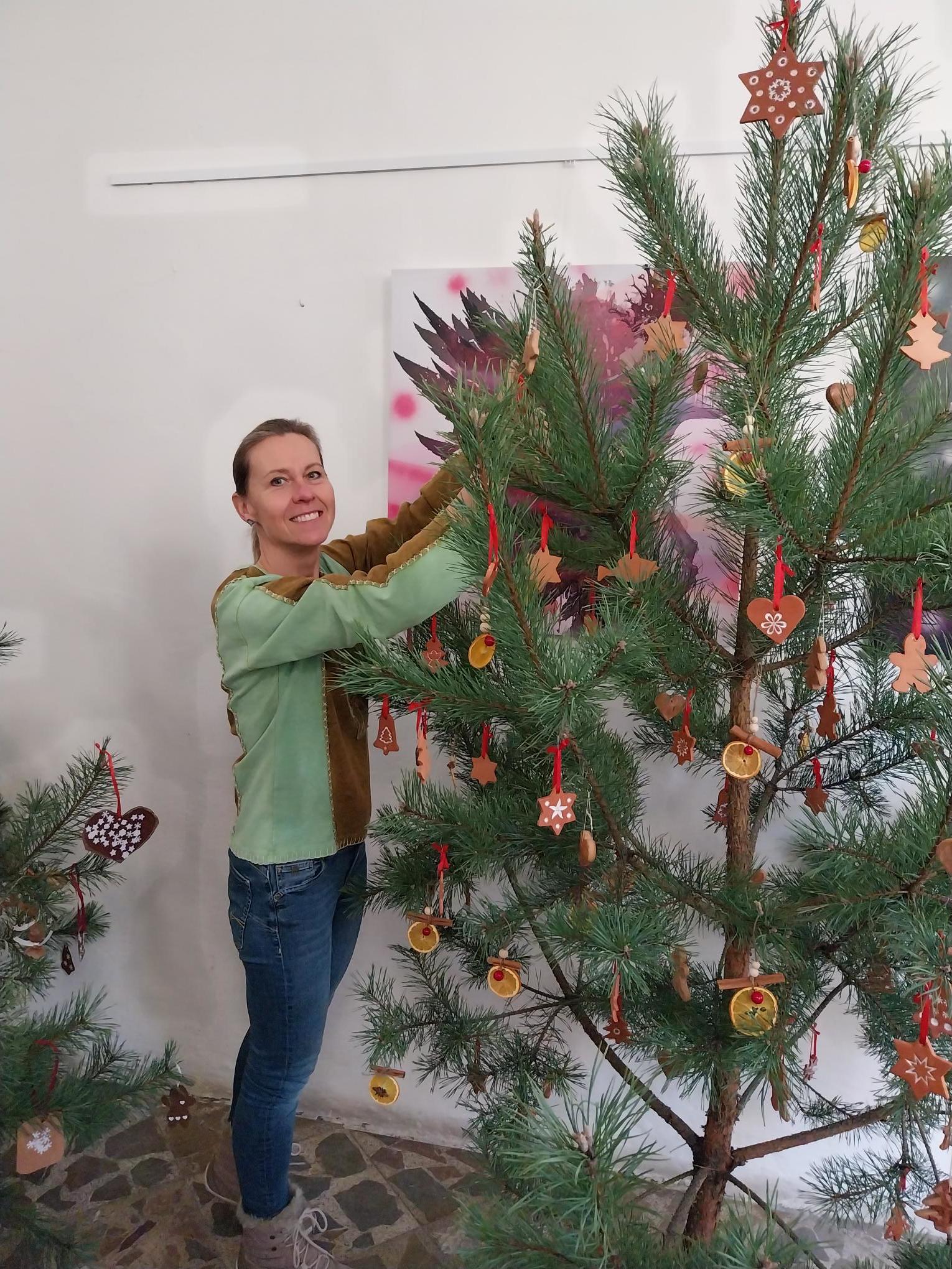 Stromeček jsme ozdobili perníčky vyhotovenými v naší keramické dílně, ozdobami z pomeranče, badyánu a skořice a také perníčky, které upekly dívky v předmětu Příprava pokrmů.