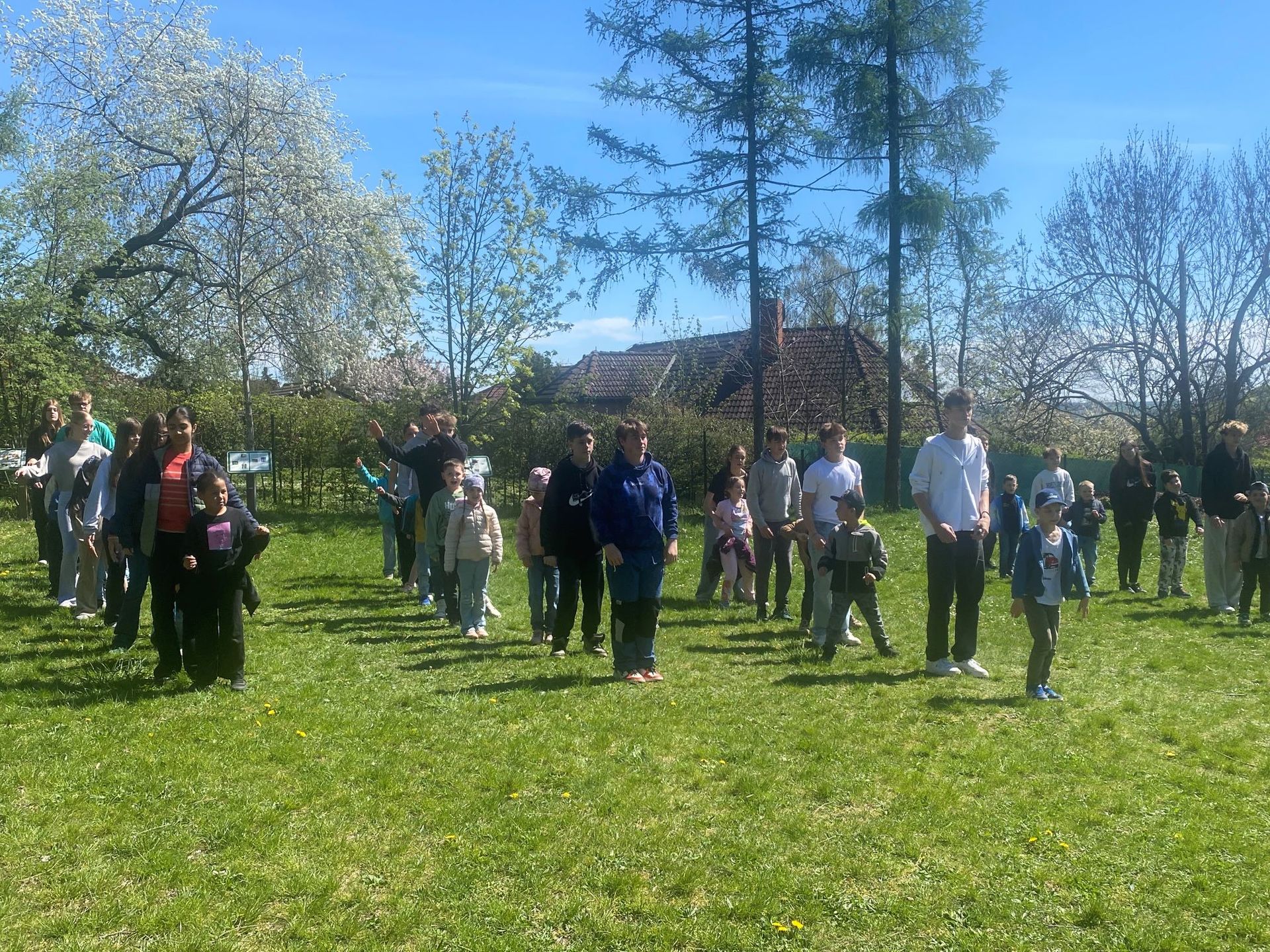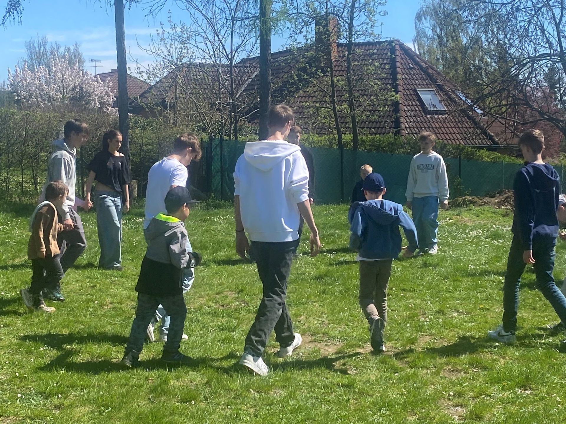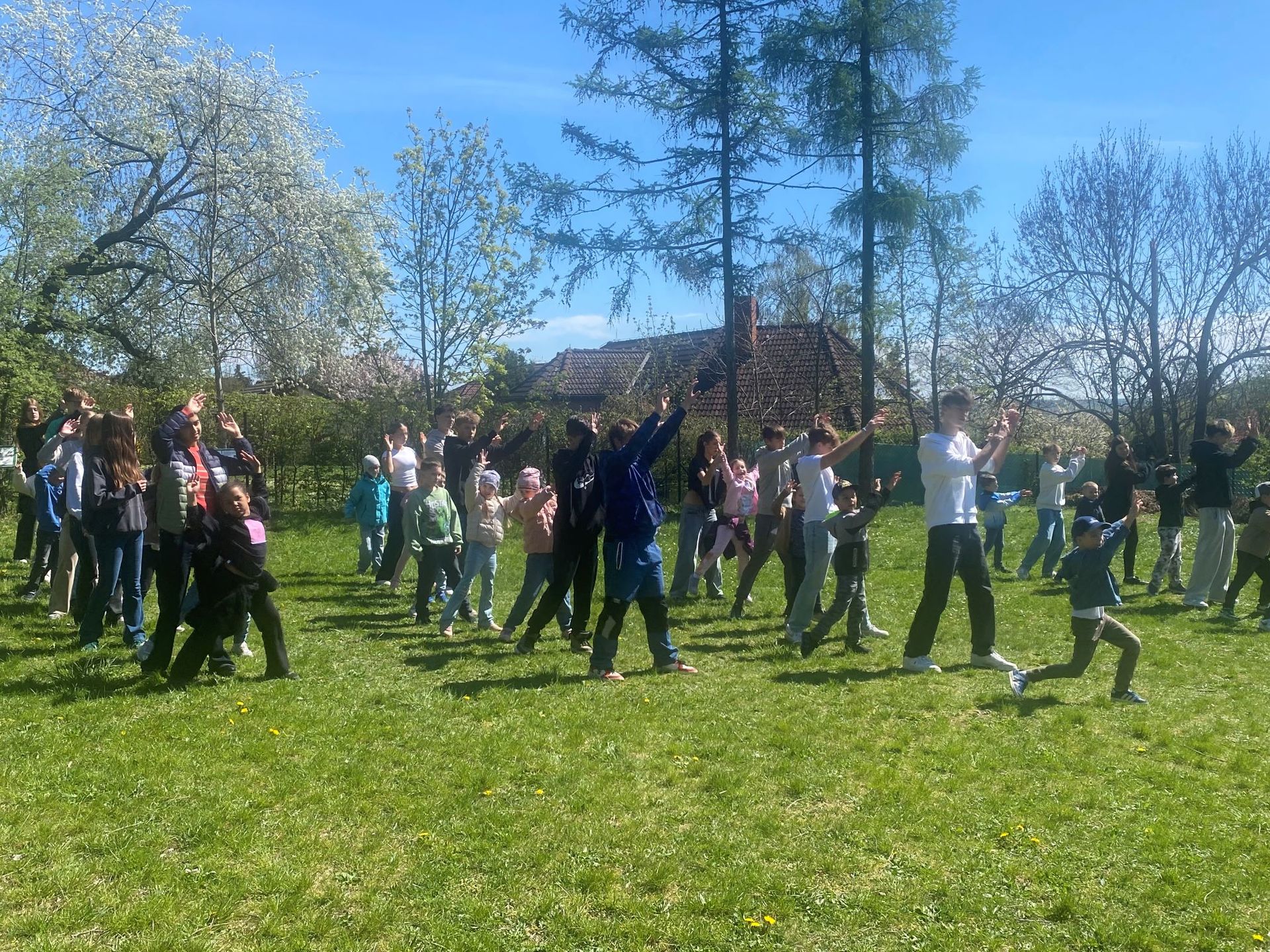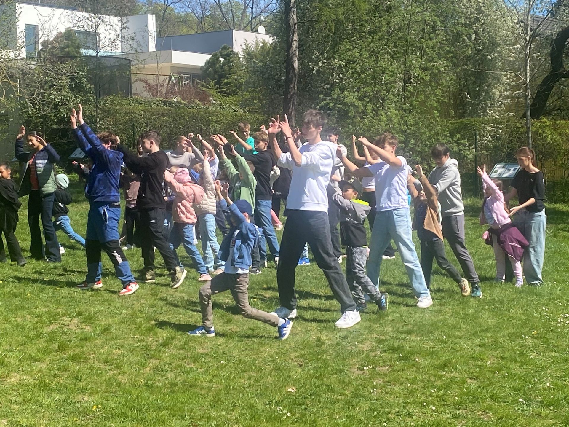 Deváťáci se ujali role průvodců a s velkou trpělivostí pomáhají svým mladším spolužákům zvládnout jednotlivé prvky choreografie. Pro prvňáčky je to nejen velká výzva, ale i radostná a obohacující zkušenost.