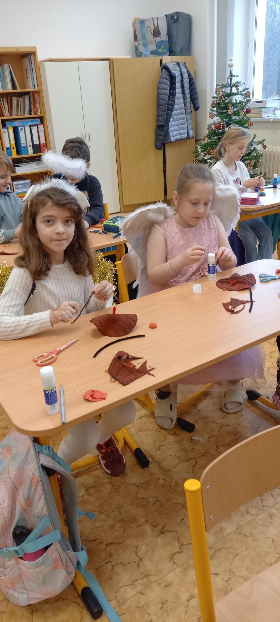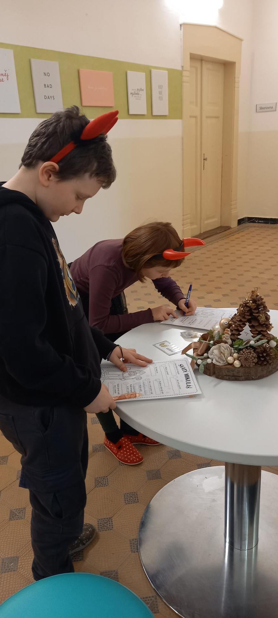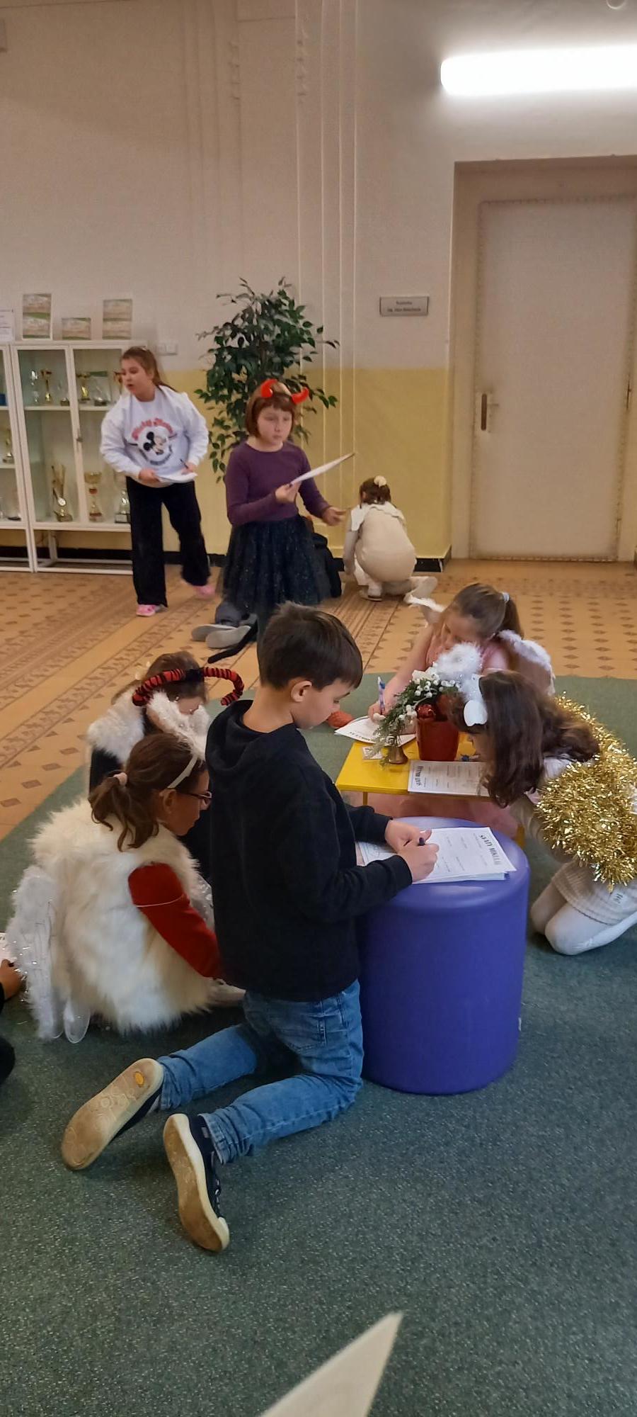 Mikulášskou nadílku jsme si obohatili ještě o tvoření čertíků a „běhací“ hru s kartičkami, které děti hledaly na chodbě. Zapisovaly si slova z kartiček do pracovního listu, z kterého se pak dozvěděly něco ze života sv. Mikuláše.