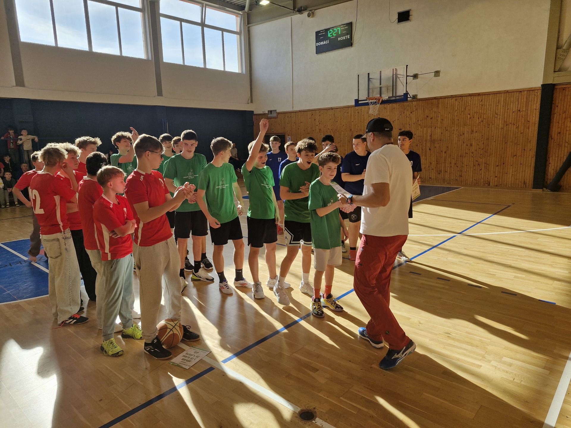 Ve skupinové části jsme nastoupili proti ZŠ Pchery, ZŠ Kvílice a ZŠ Zlonice. Všechna utkání zvládli naši hráči s přehledem, ukázali skvělou týmovou spolupráci a získali první místo ve skupině. V semifinále nás čekala 2. ZŠ Slaný. I zde naši hráči předvedli výbornou hru, přesnou střelbu i pevnou obranu, díky čemuž jsme opět jasně dominovali a postoupili do finále. Finále proti 3. ZŠ Slaný bylo nejnapínavějším zápasem celého dne. Oba týmy bojovaly do poslední vteřiny a o vítězi rozhodoval jediný bod. Naši basketbalisté ale ukázali bojovného ducha, nevzdali se a nakonec zvítězili!