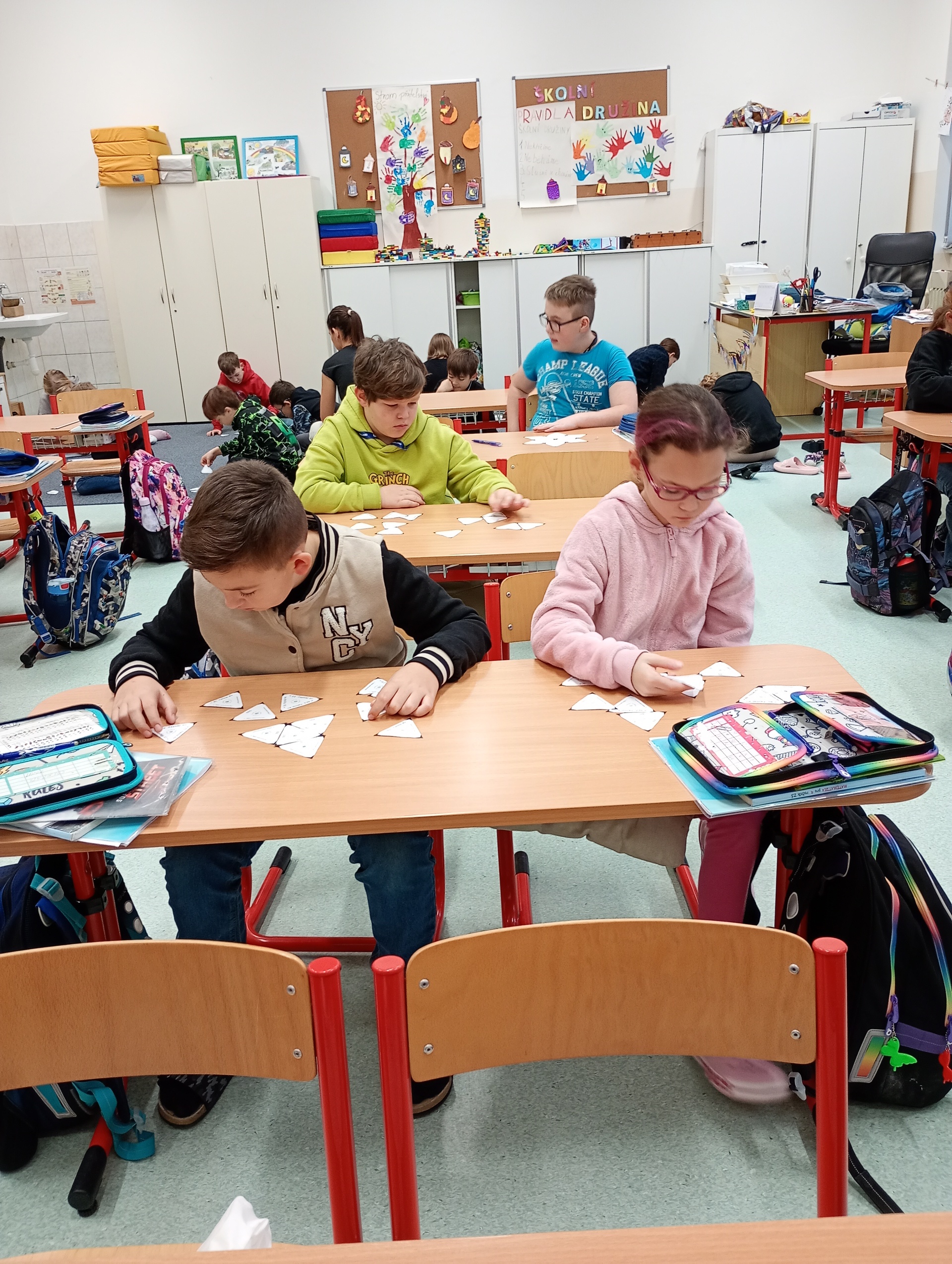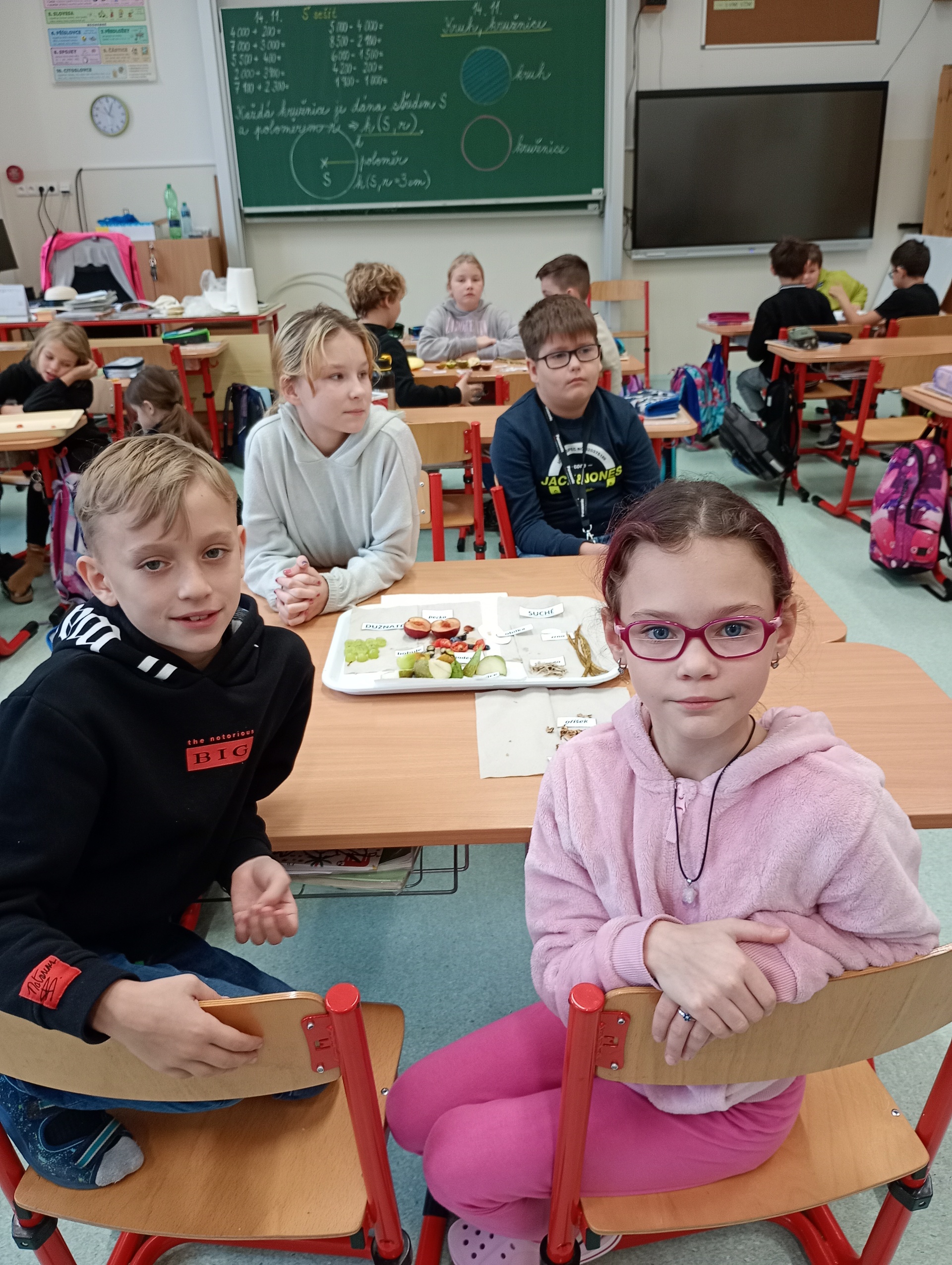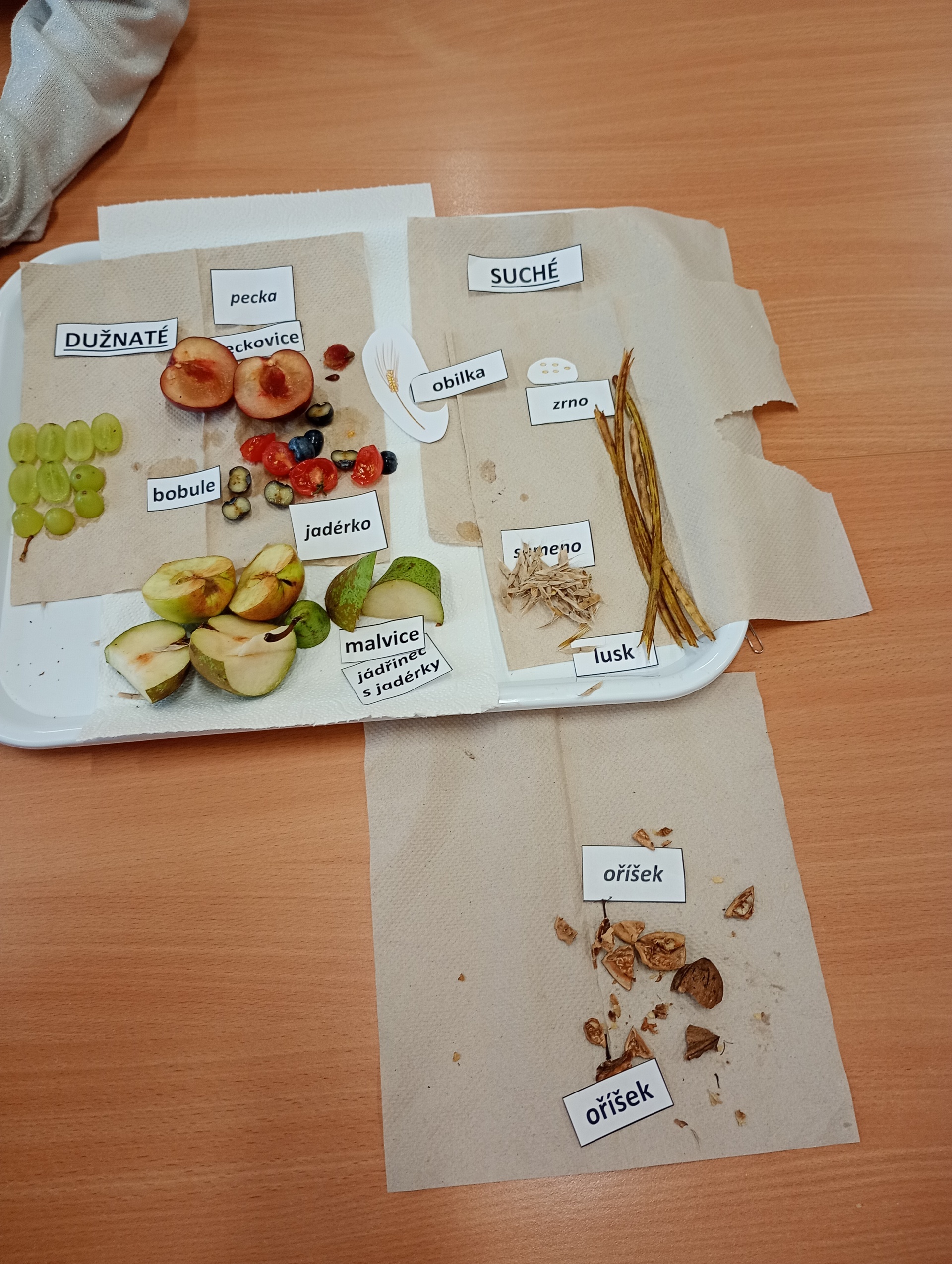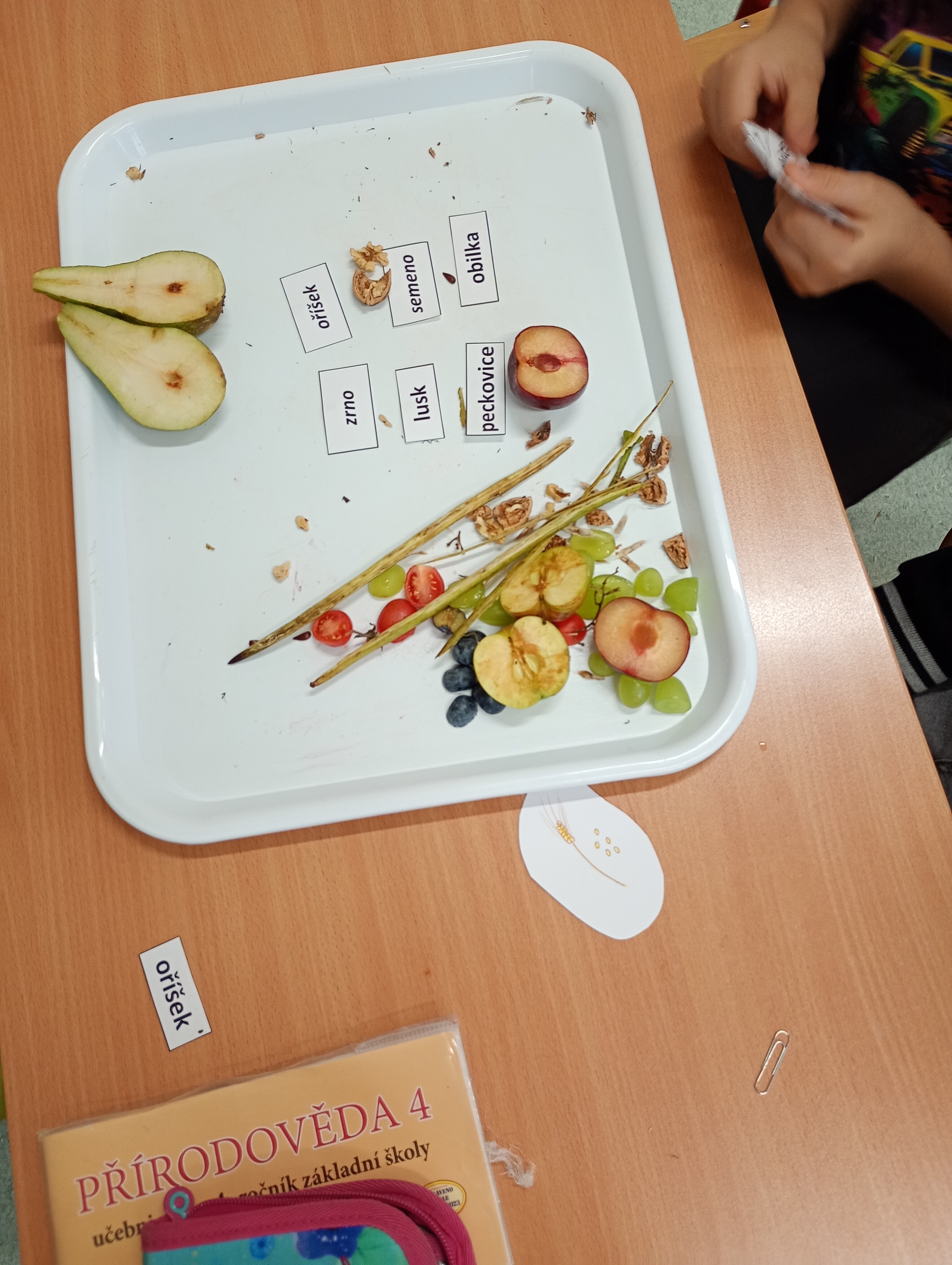 Proto si pro nás paní učitelka připravila různé aktivity, při kterých jsme se snažili zapojit co nejvíce smyslů. V hodině Tělesné výchovy jsme cvičili s ortopedickými podložkami, na kterých jsme zkoušeli různé cviky k posílení kotníků a kolen, ke zpevnění středu našeho těla i příjemnému promasírování nohou. V Matematice jsme si zahráli různé hry k procvičení probíraného učiva a v Přírodovědě jsme probírali typy plodů. Zkoumali jsme, jak ovoce vypadá uvnitř, jakou má chuť, zda obsahuje dužinu nebo je to plod suchý.