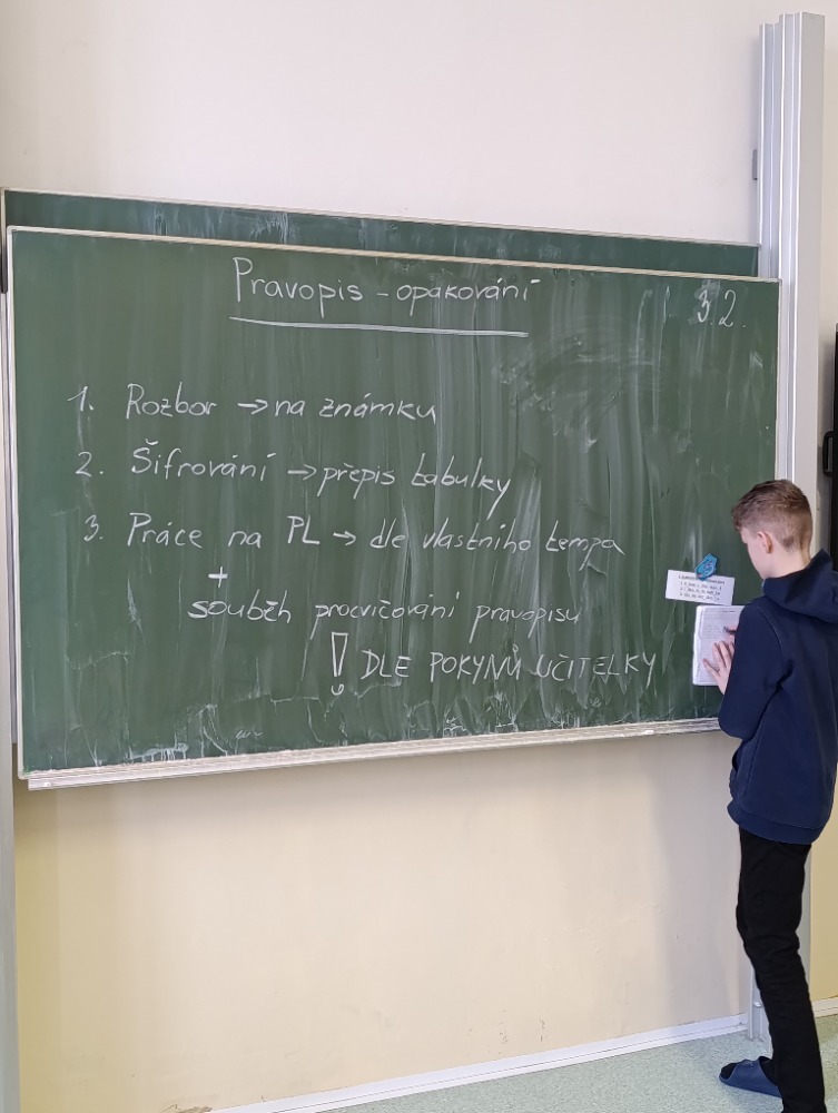 Na závěr hodiny proběhla společná kontrola správných řešení za využití IT techniky. Žáci společně zdůvodňovali jednotlivé pravopisné jevy, vysvětlovali své postupy a upevňovali si získané znalosti.