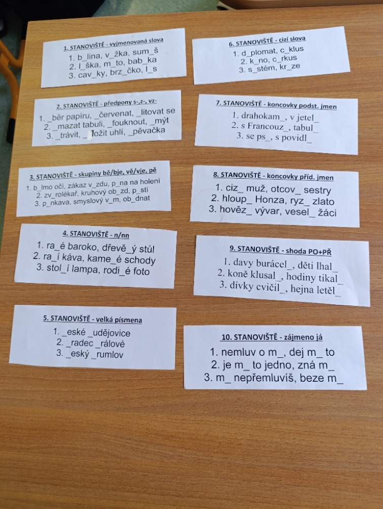 Žáci se u stanovišť střídali v několika etapách a postupně rotovali po třídě, dokud neprošli všech deset stanovišť. Práce byla dynamická, podporovala samostatnost, spolupráci i aktivní zapojení všech žáků.